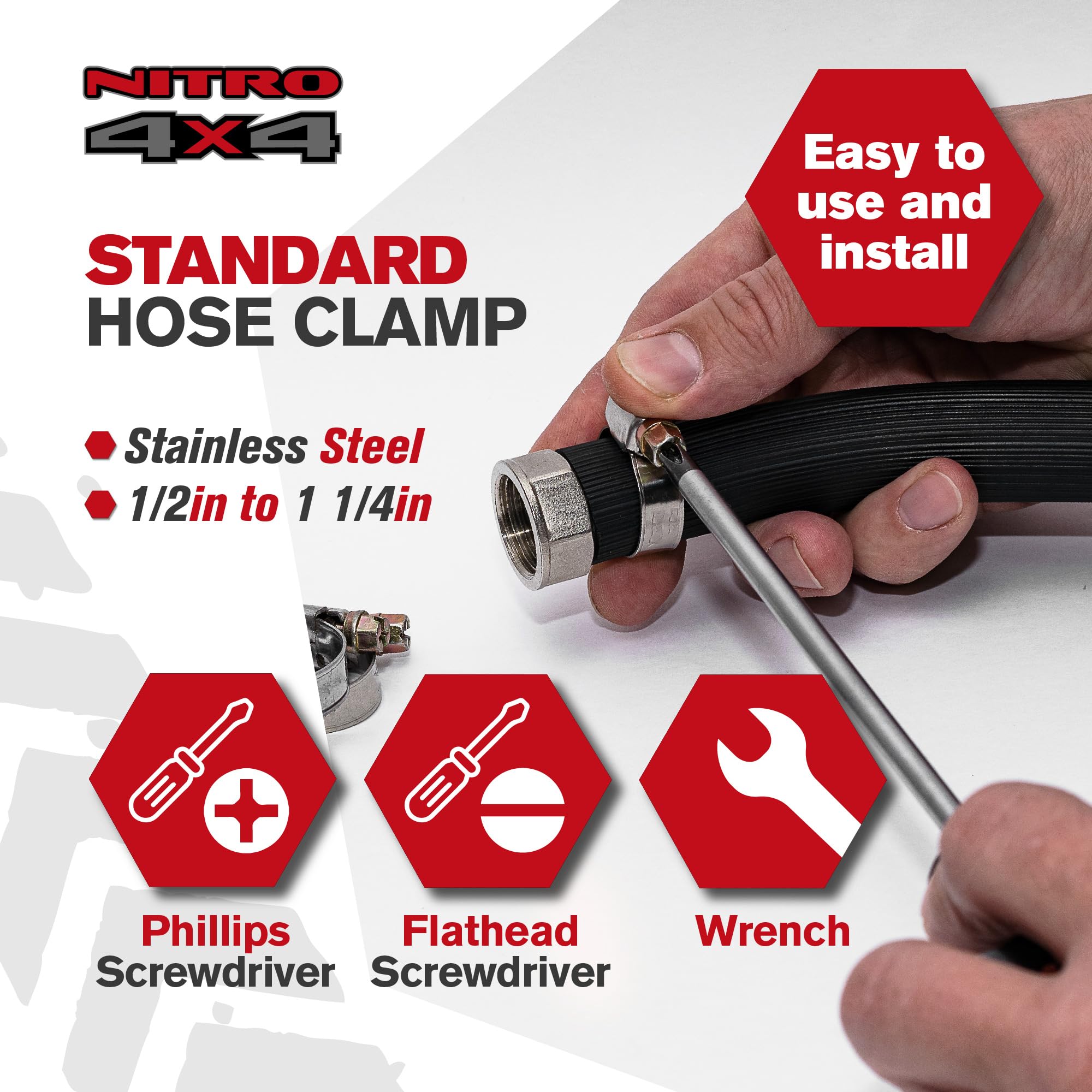 Premium Hose Clamps Stainless Steel Construction: Crafted from durable stainless steel, these hose clamps are designed to endure rugged use in various applications. Ideal for high-pressure settings, they deliver superior corrosion resistance and longevity.