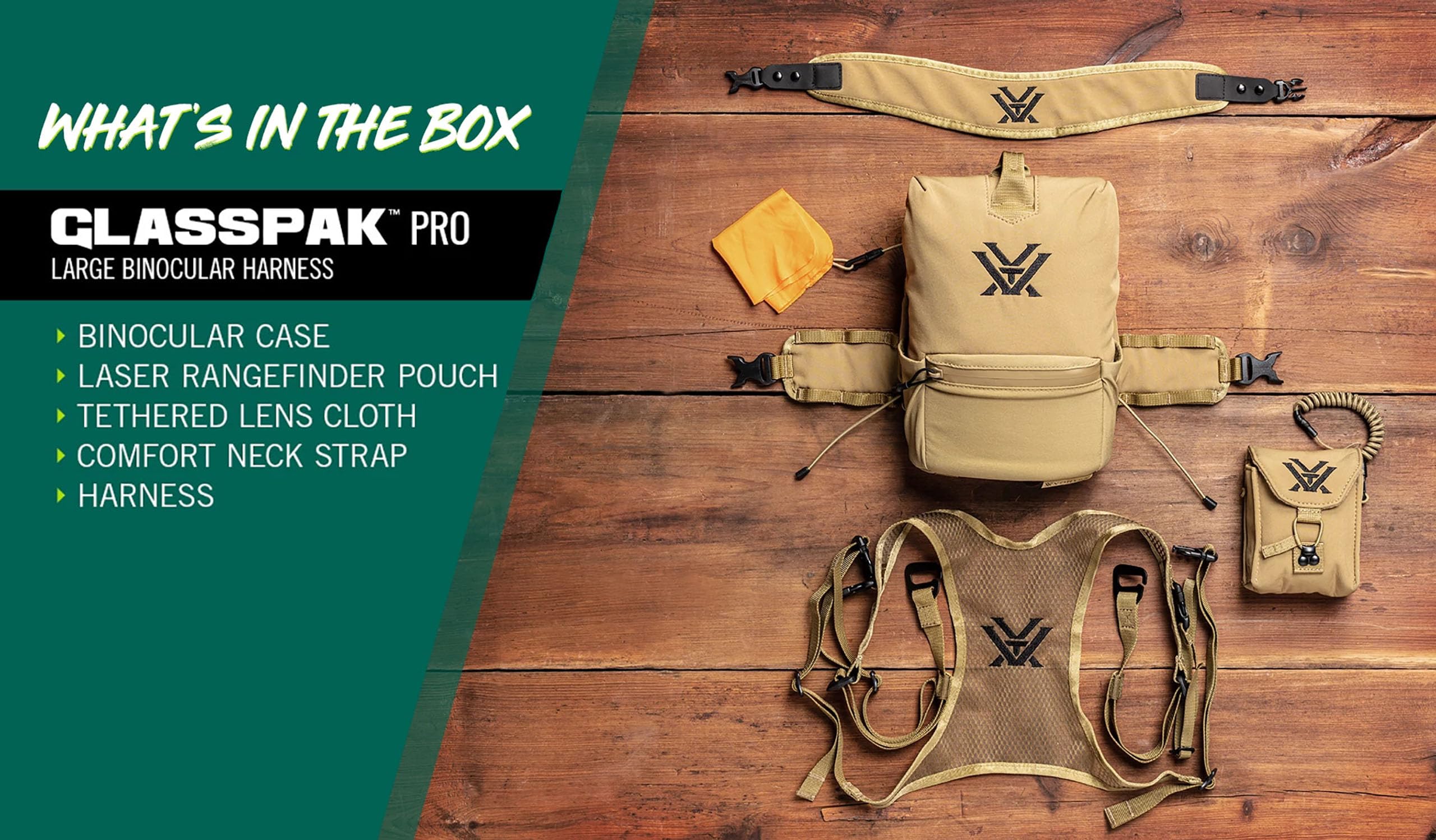 Choose from two size options to best accommodate your binoculars. Small fits most 42mm or smaller binoculars while the Large fits most 5mm or 56mm binoculars and Razor UHD 42mm and 5mm binoculars.