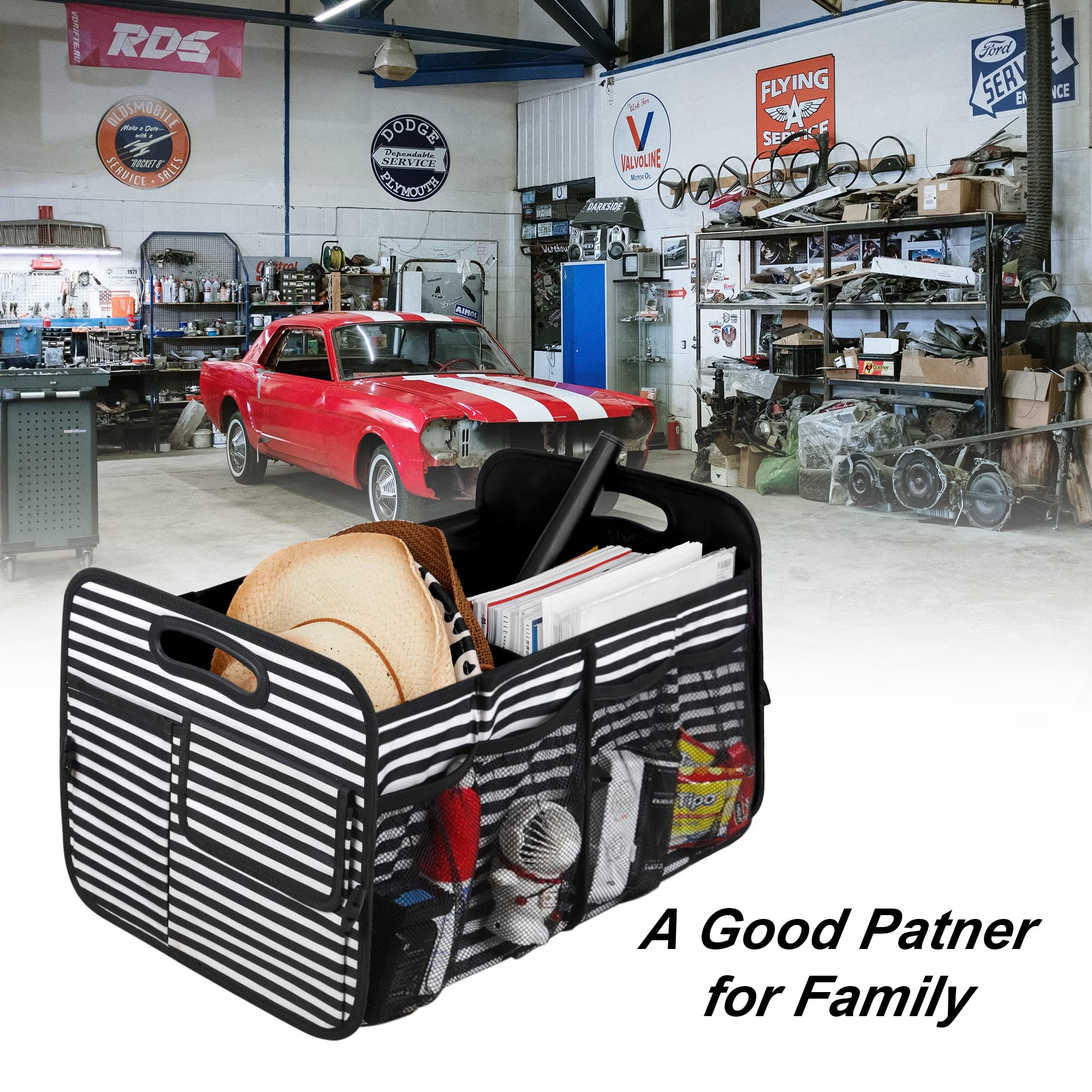 【Trunk Organizer for Car】:This is the optimal solution for maintaining a clean car interior as car accessories. Suitable for all vehicle types, like trucks, SUVs, vans, jeeps, cars, etc., and it's fantastic for transporting and arranging groceries, toys, athletic equipment, tools, and more in your trunk. Eliminate trunk clutter situation with this car organizer.