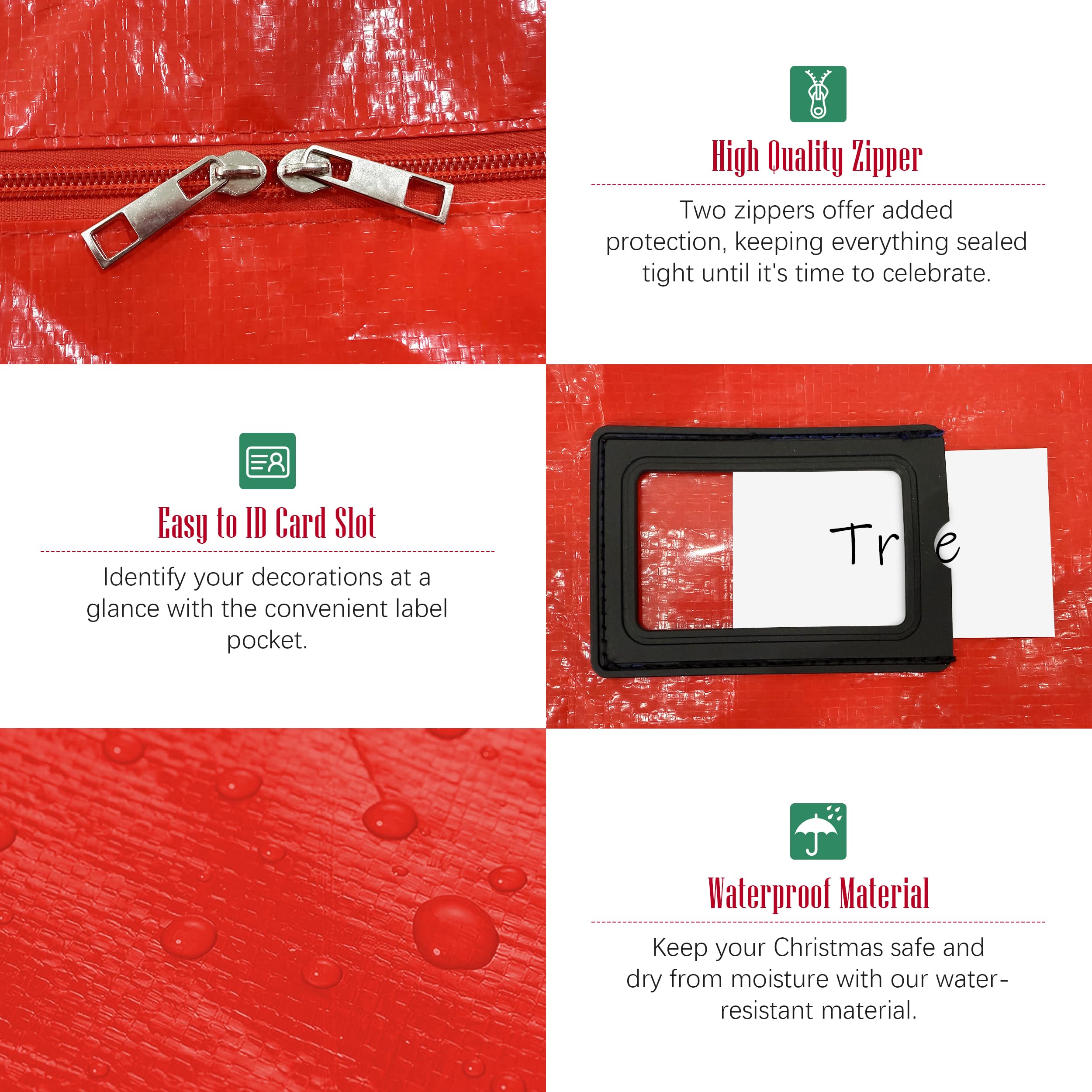 🌲PEACE OF MIND: Safeguard your treasured holiday decorations from dust, moisture, and pests with our Christmas tree storage bag. Rest assured that your tree will remain in perfect condition until it's time to unpack it next season.