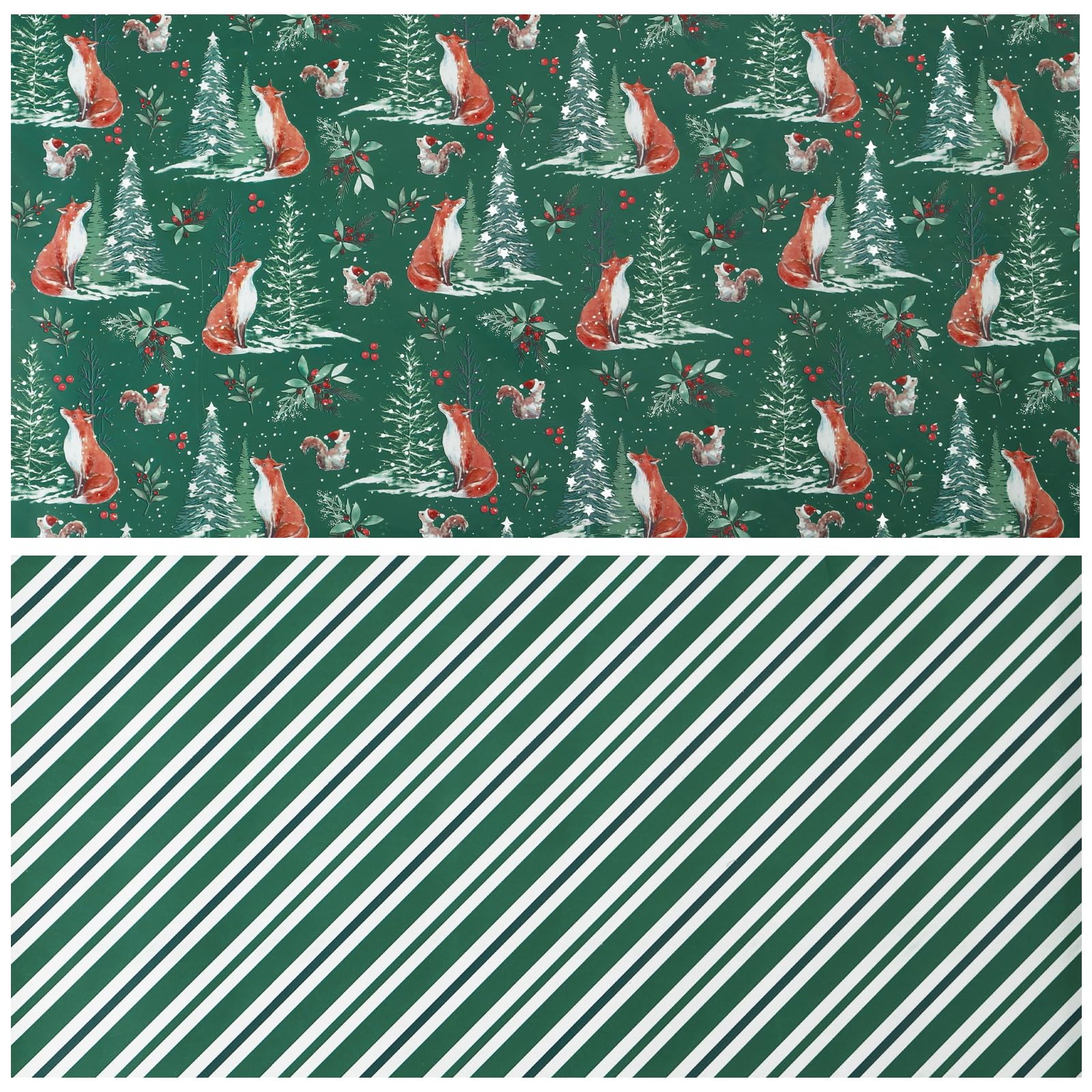 Charming Woodland Theme: Features foxes, squirrels, snow-covered trees, berries, and pine branches in a serene forest setting—perfect for nature lovers.