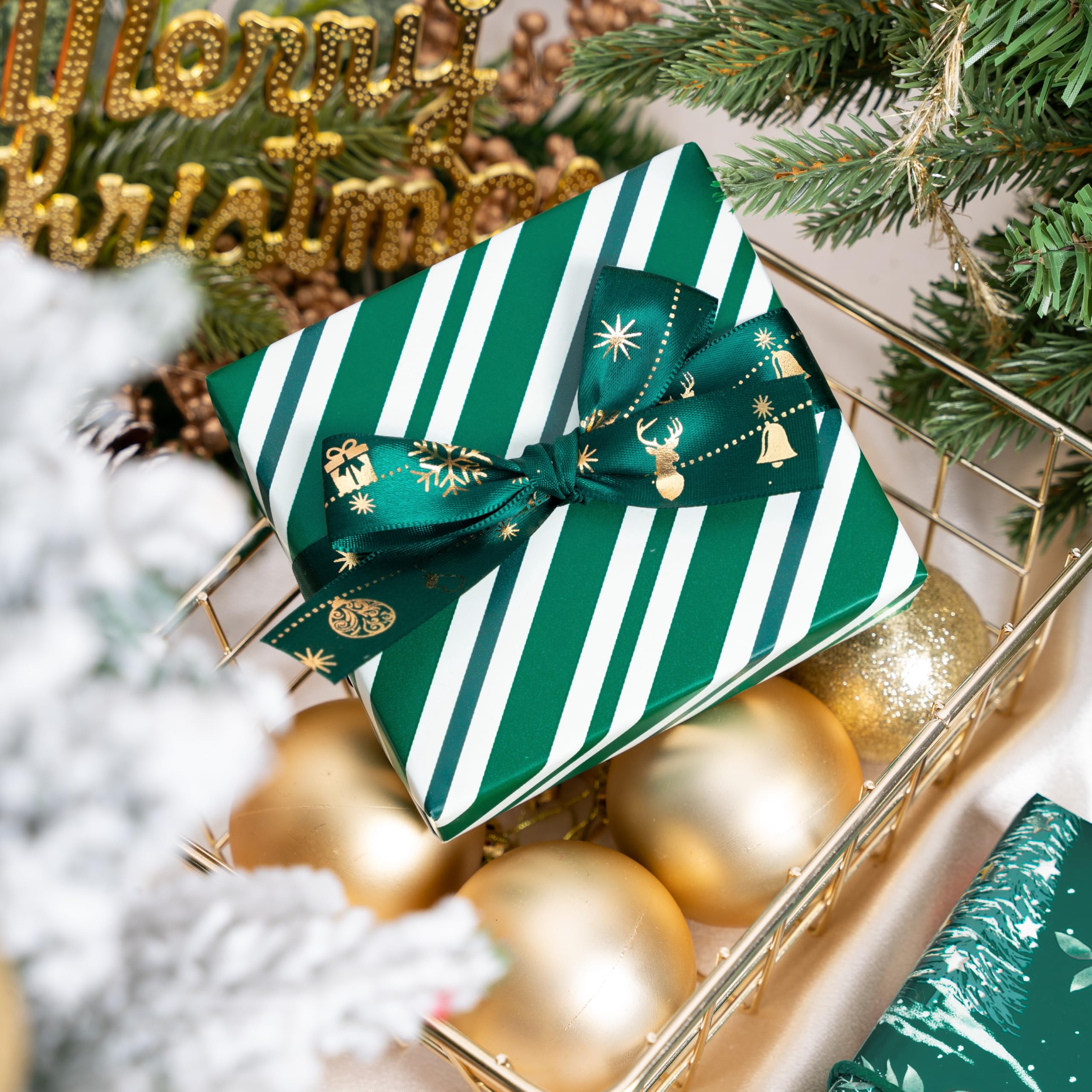 Reversible Green Stripe Back: Double-sided with a classic green and white diagonal stripe pattern on the reverse for versatile wrapping styles.