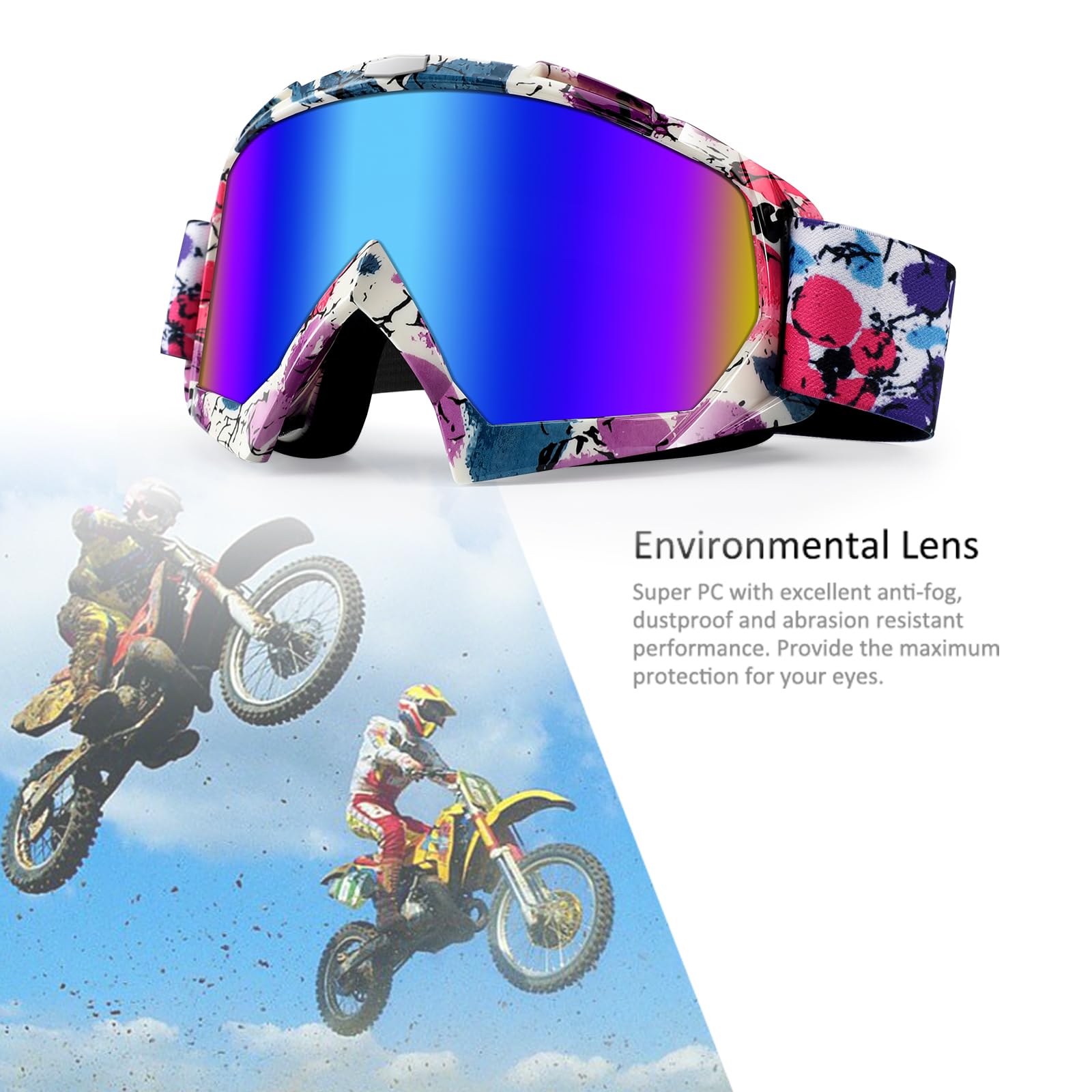 The motocross goggles is with light weight,so it is convenient to carry and it will not give your eyes burden. PC multi-color reflective lens, anti-fog, scratch resistant, 100% UV protection.