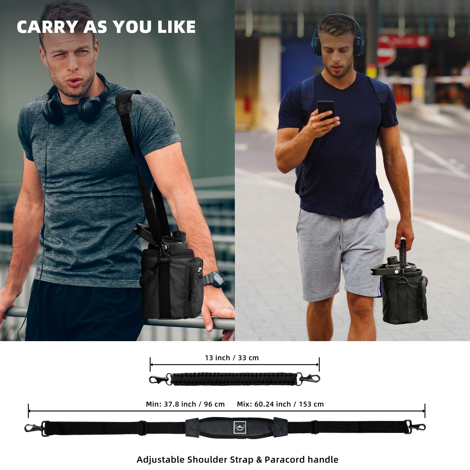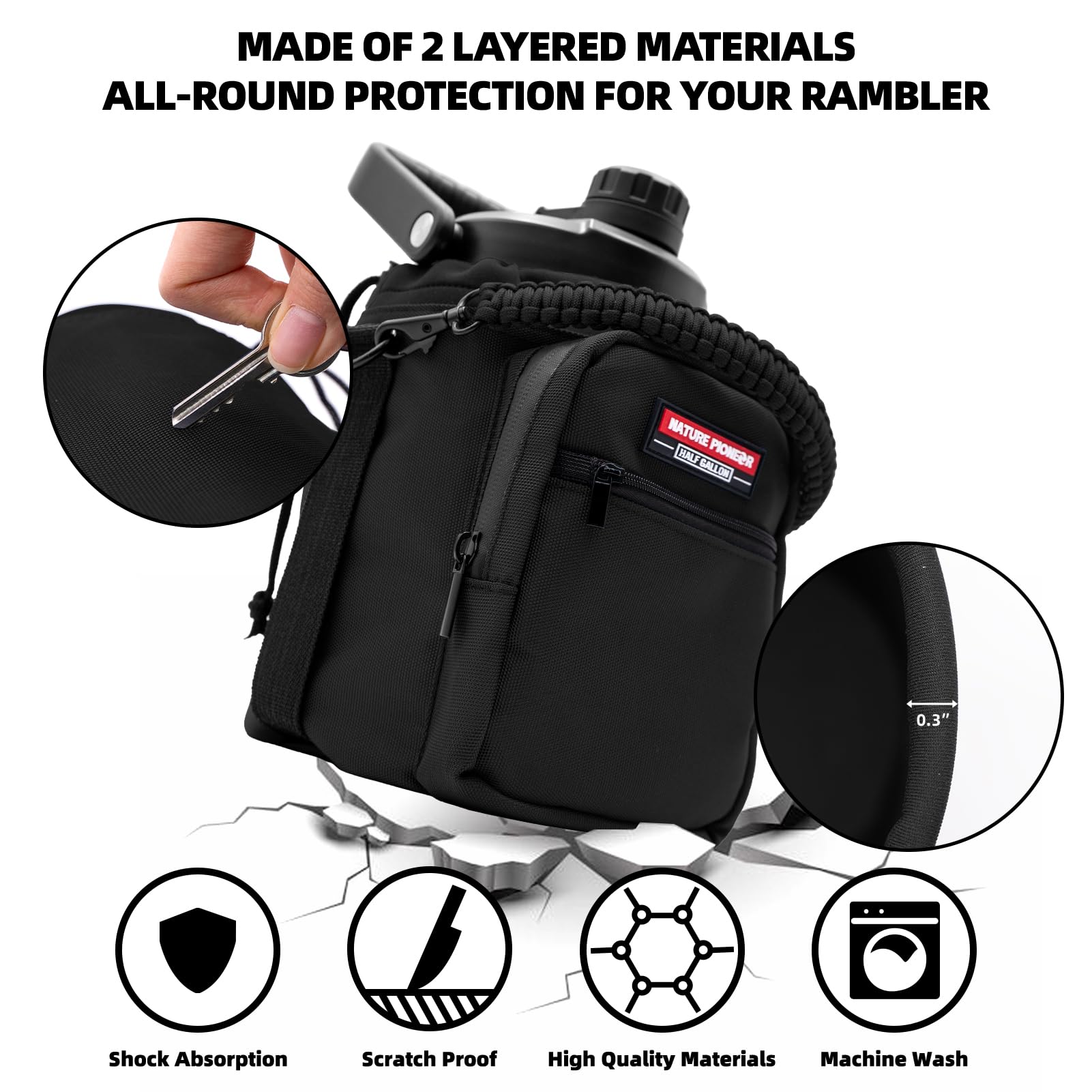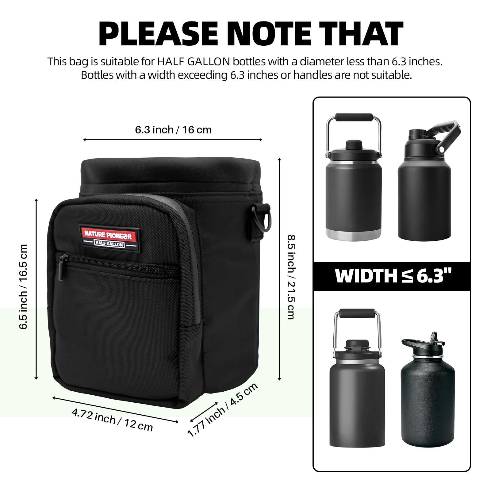 【Fits the YETl half gallon water bottle jug】- The Size of water bottle holder is only suitable for YETl. Since we have received feedback from many customers, and we are willing to add new type of half gallon water bottle carrier to meet your needs. Other half-gallon holders can be purchased from another of our product links. Maximum 6.30" bottle diameter allowed for our pouch carrier