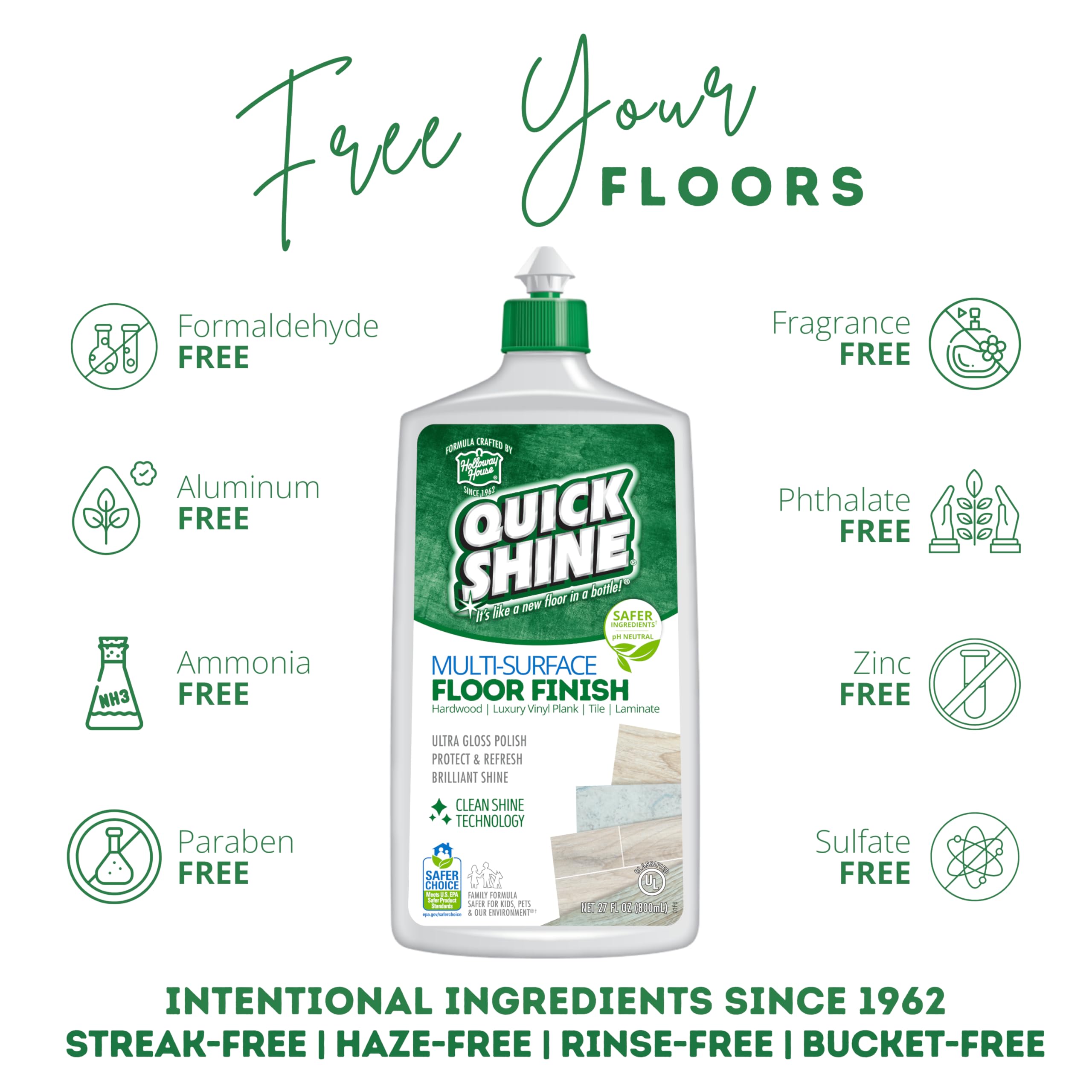 Quick Shine Multi Surface Floor Finish 27oz, 6Pk | Cleaner & Polish to use on Hardwood, Laminate, Luxury Vinyl Plank LVT, Tile & Stone | Safer Choice w/Clean Shine Technology | Shine-Protect-Refresh