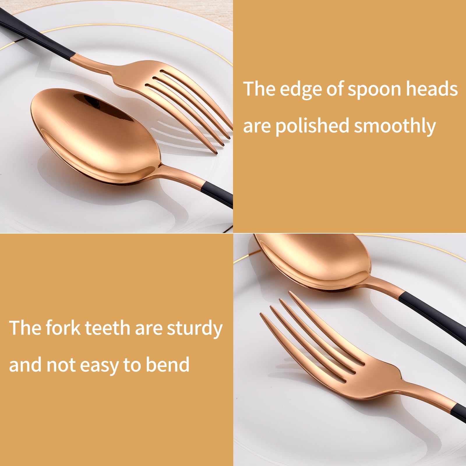 【DURABLE DESIGN】: Constructed of high-quality 18/0 stainless steel, this flatware set is rust and corrosion resistant for lasting use.