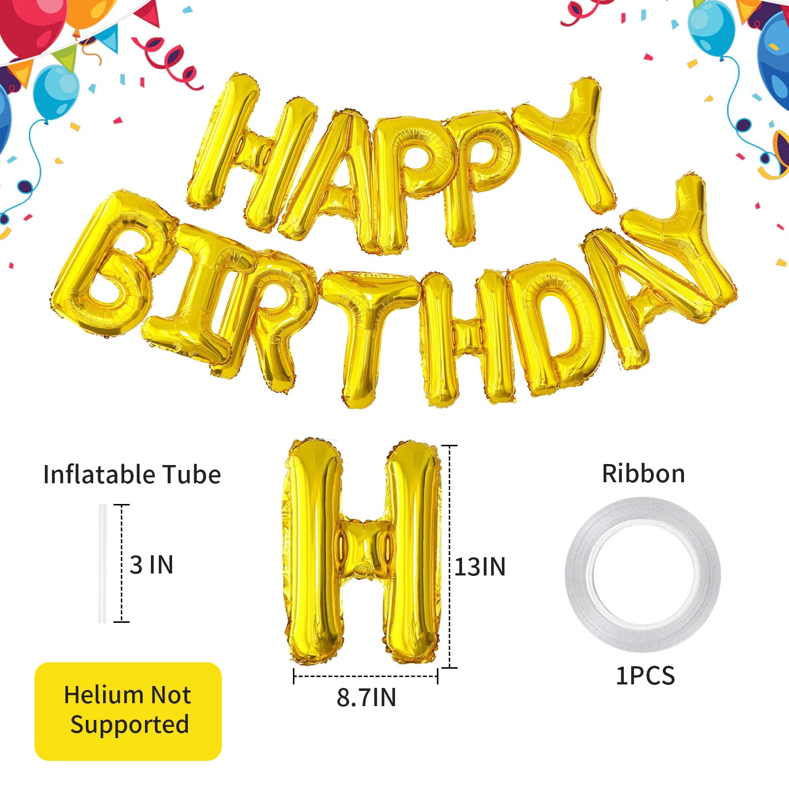 𝐘𝐨𝐮 𝐖𝐢𝐥𝐥 𝐆𝐞𝐭 - 16 inch "HAPPY BIRTHDAY" foil balloons letters with 1pcs straw and 1 pcs ribbon. Each letter balloons is independent, height about 16 Inch.