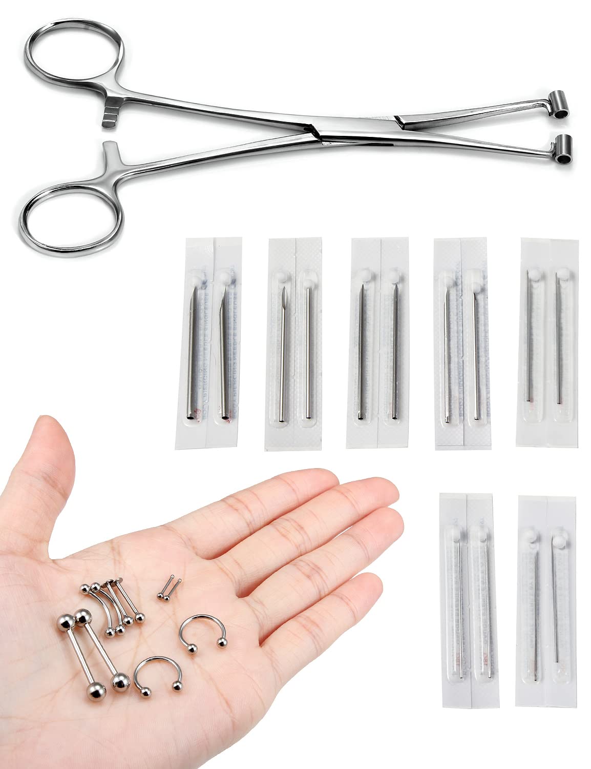 [ITEM CONTAIN]: You Will Receive 1 Pieces Forceps Piercing Clamps Piercing Tools with 14 Pieces Piercing Needles and 10 Pieces Piercing Jewelry, All Of Them Are Beautiful And Elegant, Multiple Choices For Meeting Your Various Needs.