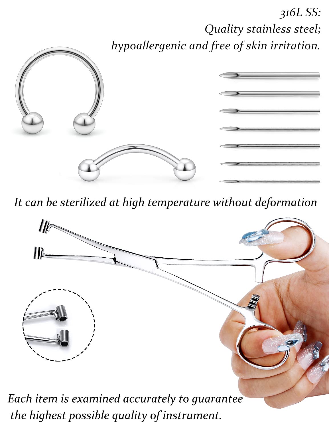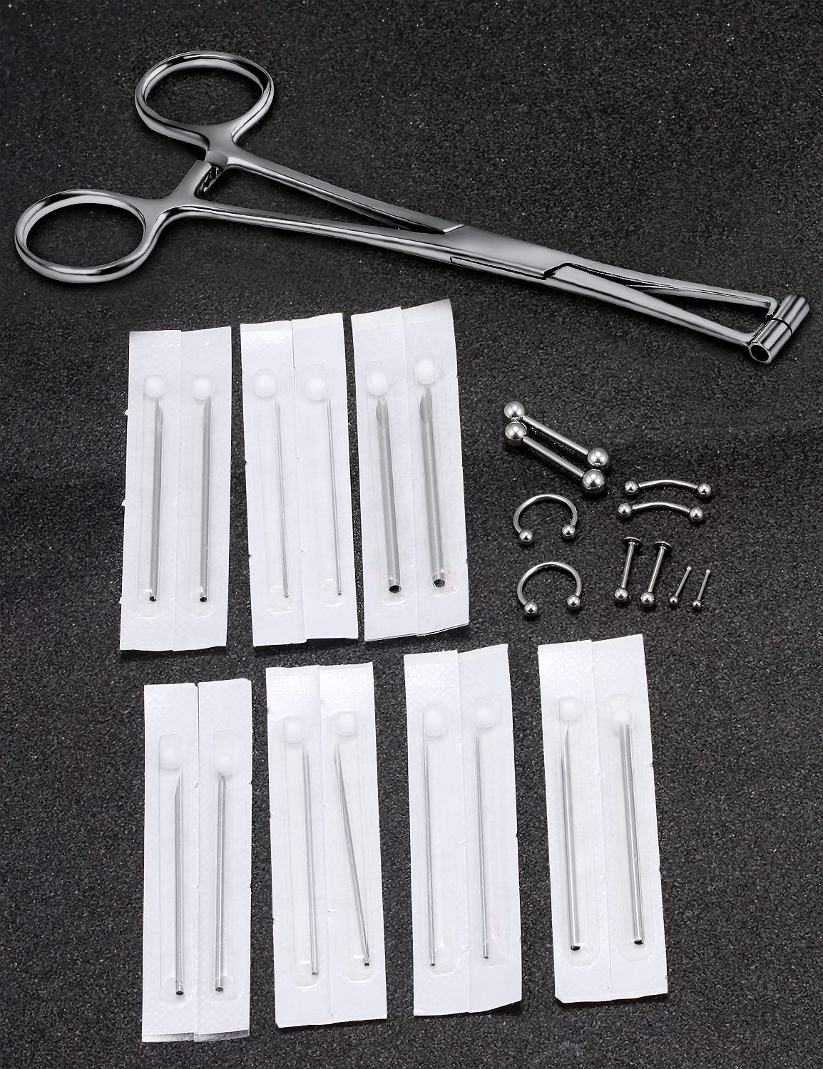[SUITABLE FOR USE]: These Body Jewelry Piercing Kit Tools Can Be Used For Belly Button Rings, Tongue Rings, Septum Rings, Nose Rings Piercing, Lip Rings, Eyebrow Rings, Ear Piercing, Cartilage Tragus Helix Rook Conch Daith Earrings Piercing Jewelry