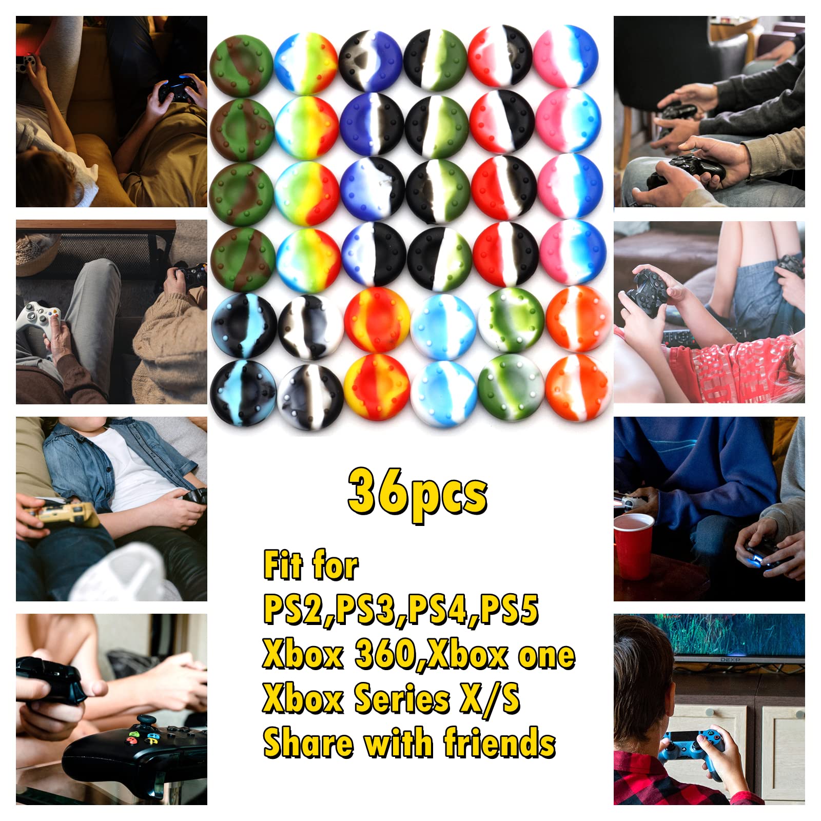 Various Styles: 36pcs ps4/ps5 joystick grips contain various colors and styles, they will provide you with different choices and game experience. Also they will be good gifts for you. and you can share them with your friends, a good choice.
