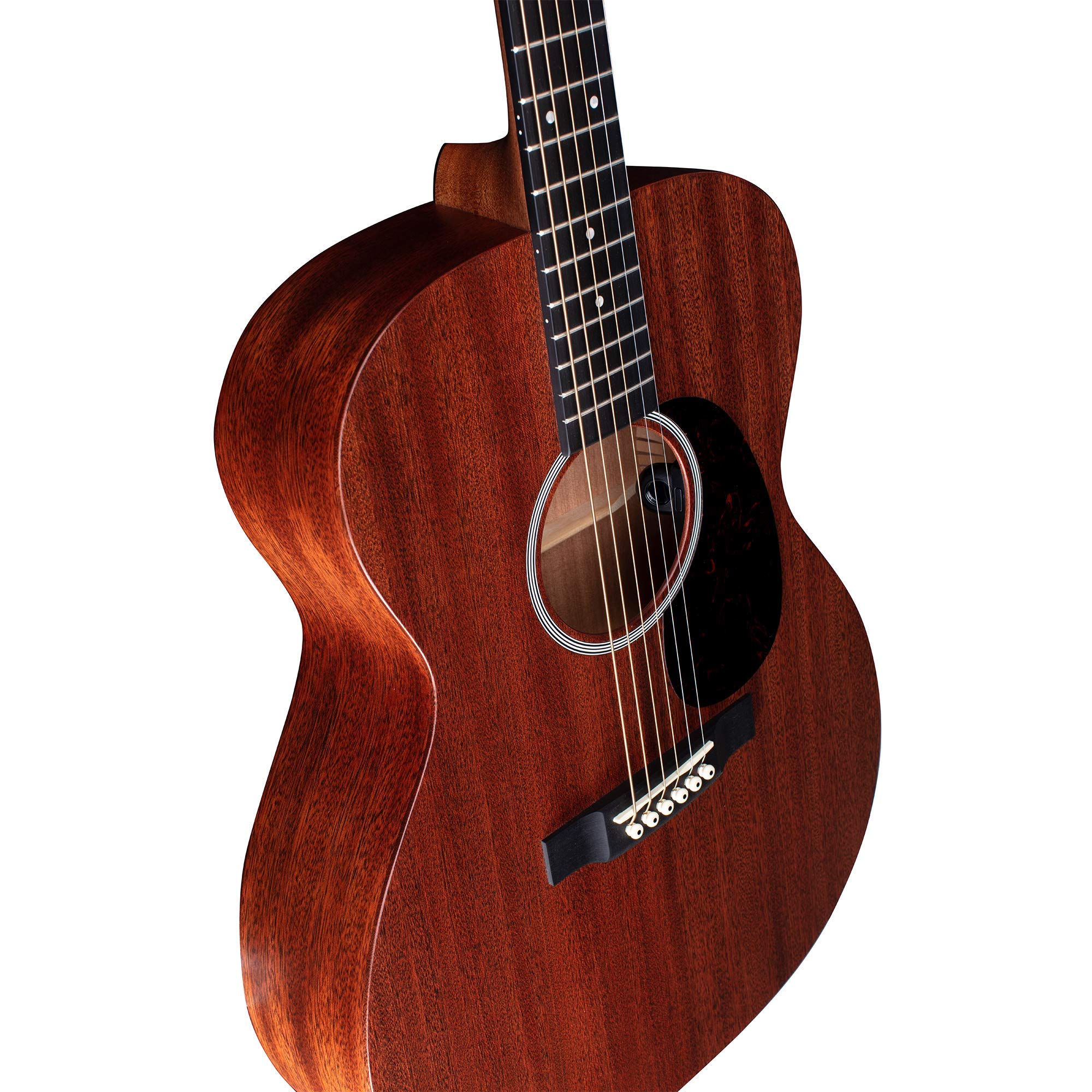 Gorgeous Auditorium Acoustic-electric from Martin Find out what so many guitarists have come to love in a Martin with the very affordable and beautifully designed 000-10E Road Series. This Auditorium model acoustic-electric guitar features a solid all-sapele body for rich, full tone. In addition, a select hardwood neck with Richlite fingerboard offers incredible playability and response, ideal for both fingerstyling and flatpicking. And when you’re ready to plug in, the onboard Artec Martin E1 electronics deliver stellar amplified acoustic tone.Designed for play The all-sapele Auditorium body of the 000-10E produces big, varied tone with emphasis on the bass but a strong treble response as well. First introduced in the early 1920s, Auditorium-body acoustics earned a reputation among players as outstanding fingerpicking guitars, and the 000-10E carries that tradition forward beautifully. Whether you play bluegrass, Delta-style blues, or modern country, you will find the 000-10E to be an ideal fingerpicking guitar