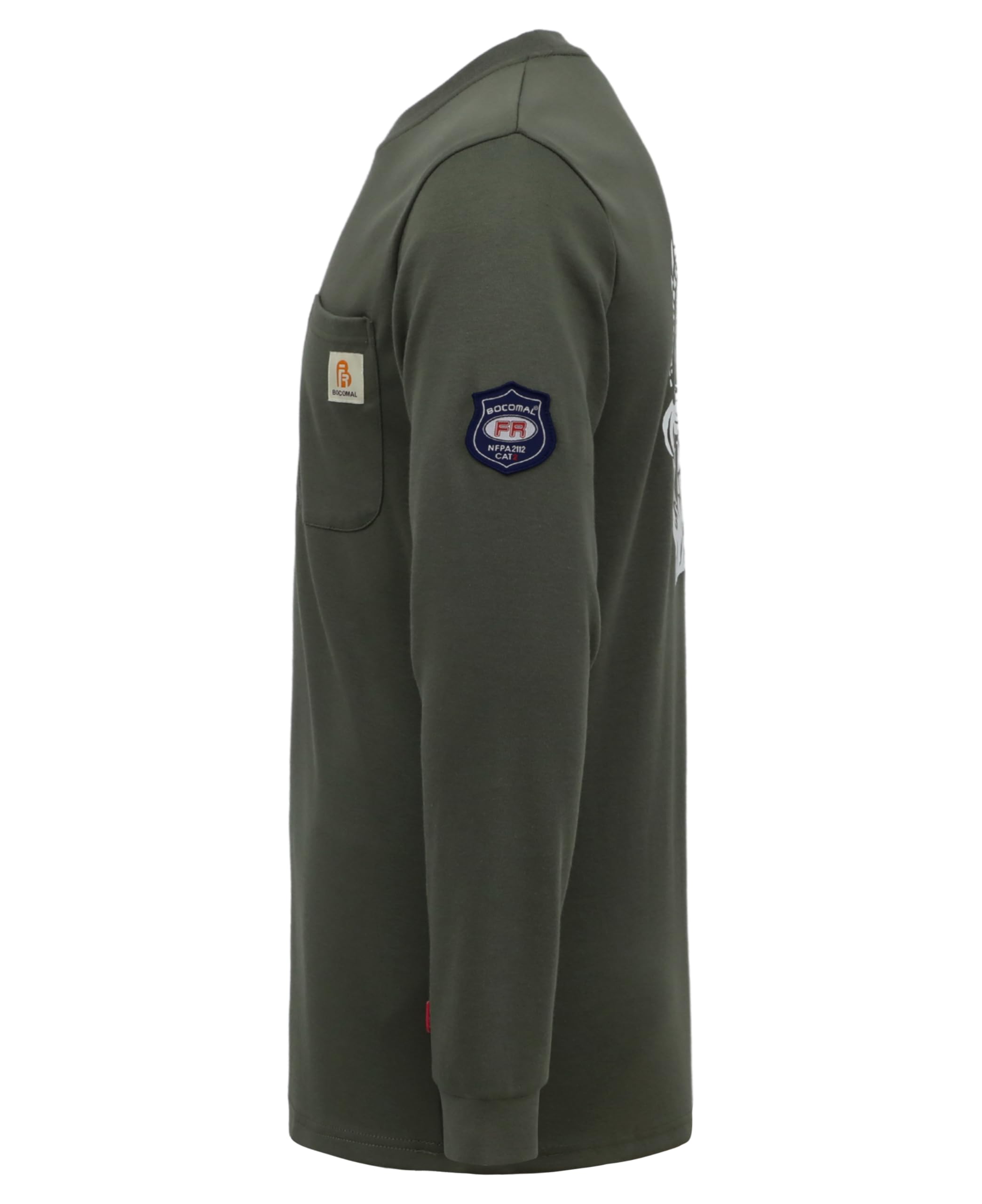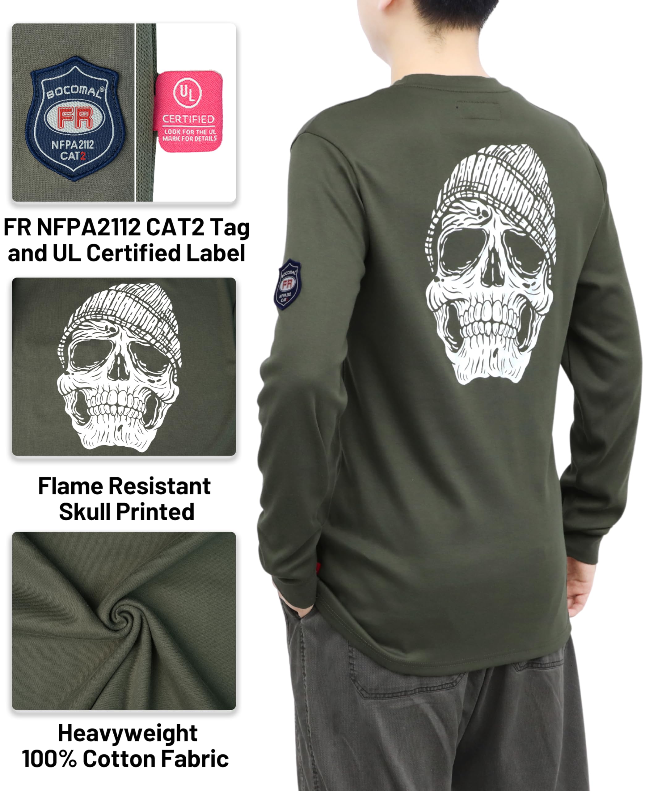 FR MATRIALS:7OZ Cotton Knit FR Treated,FR Buttons,FR Sewing Threads!Clear FR Tag on arms and bottom front.More FR info On Neck Tag About UL Certification.We Attached A Small Sample Inside Package For Cunstomers Simple FR Try