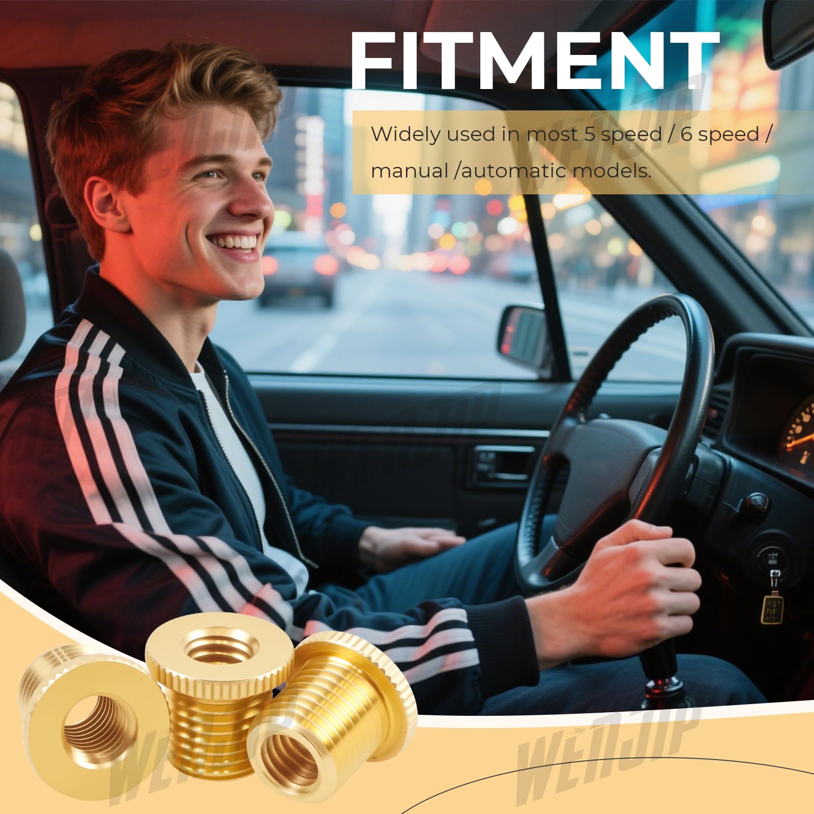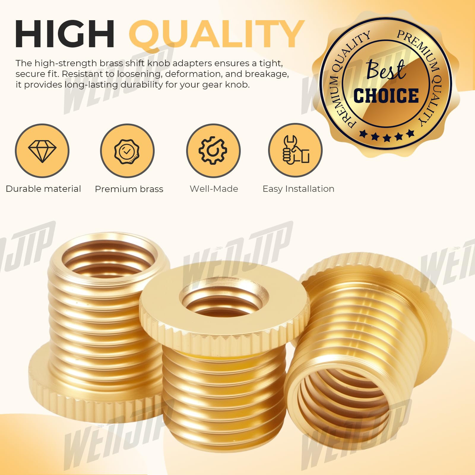 Material: Made of Brass, this shift knob adapters kit includes 3pcs M8*1.25 internal Thread to M12*1.25 external thread, almost universal.