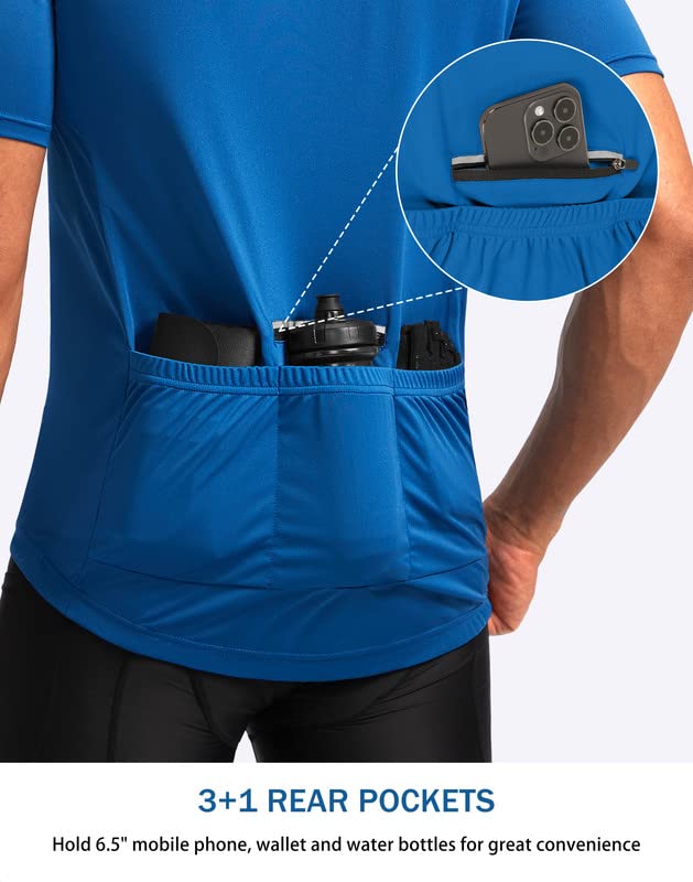 4 Pockets: 3+1 rear pockets provide convenient storage for your cycling essentials, such as water bottles, energy bars, and a phone, with one pocket featuring a zipper closure for added security, so you can ride with peace of mind knowing your belongings are safe and easily accessible.