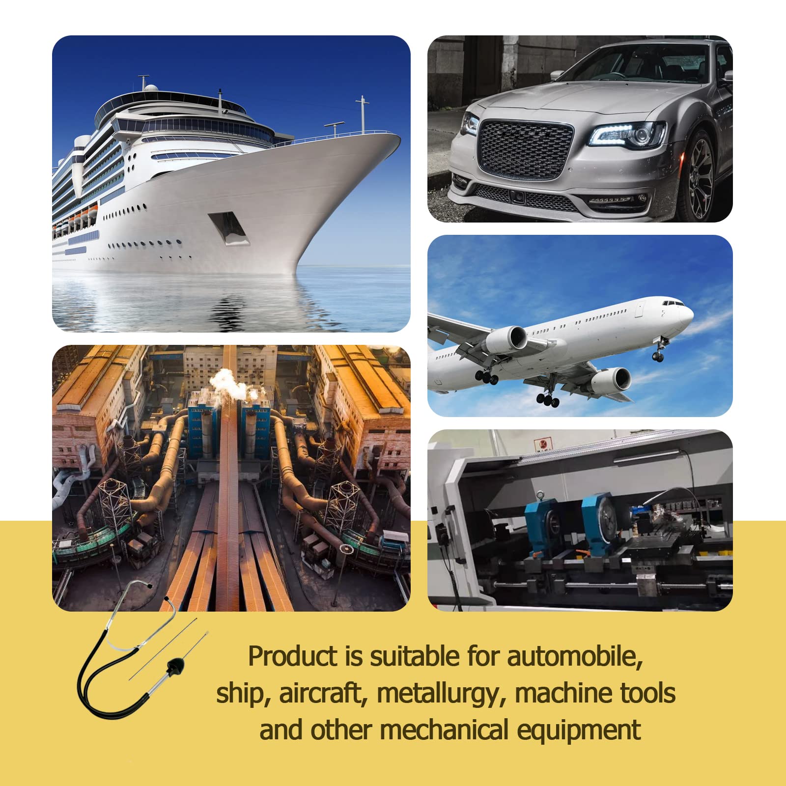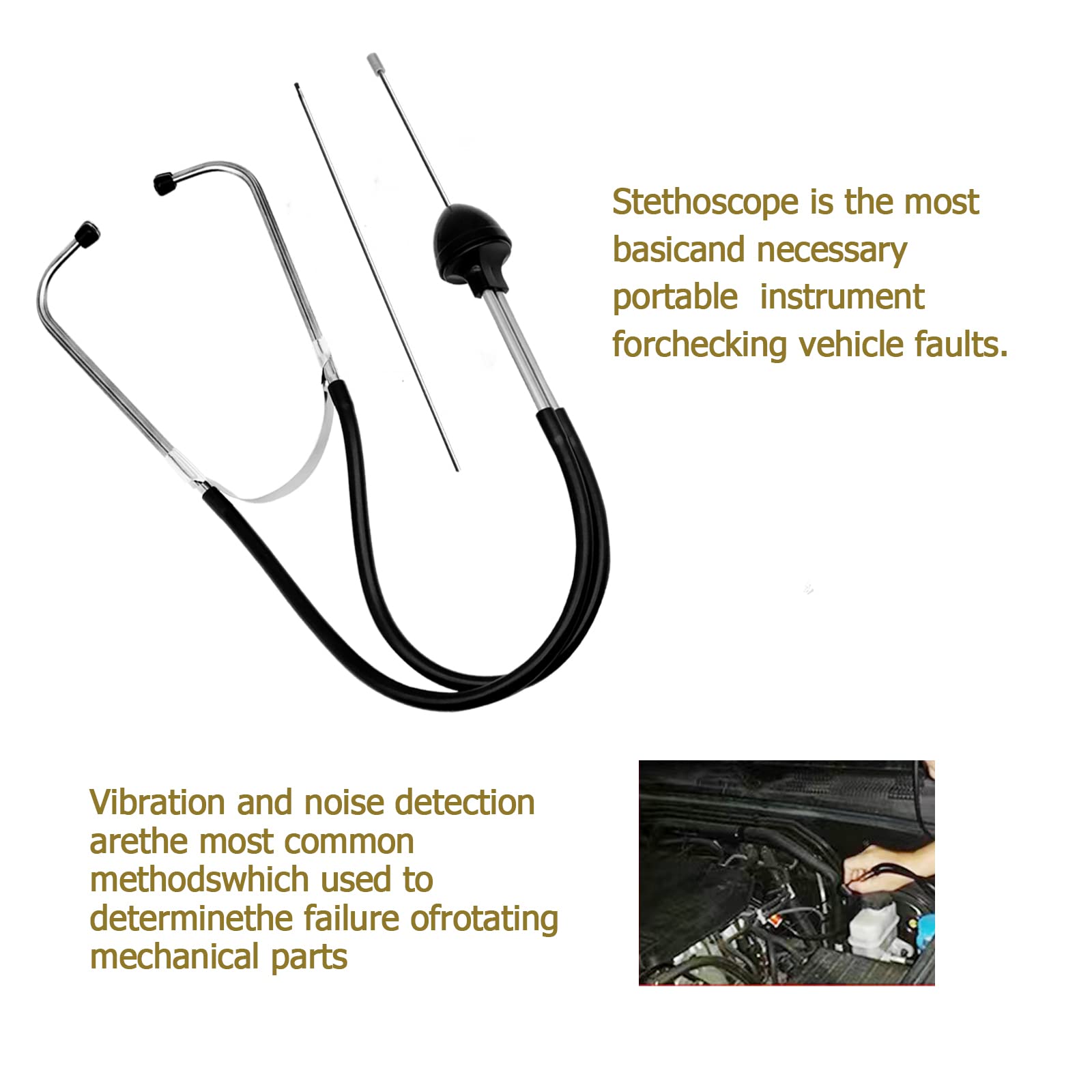 【Easy to use】You can use the stethoscope to monitor the parts that make abnormal noises,simply follow where the sound is the loudest in the motor and create contact between the probe and surface to confirm, check other places if unable to detect issue immediately.
