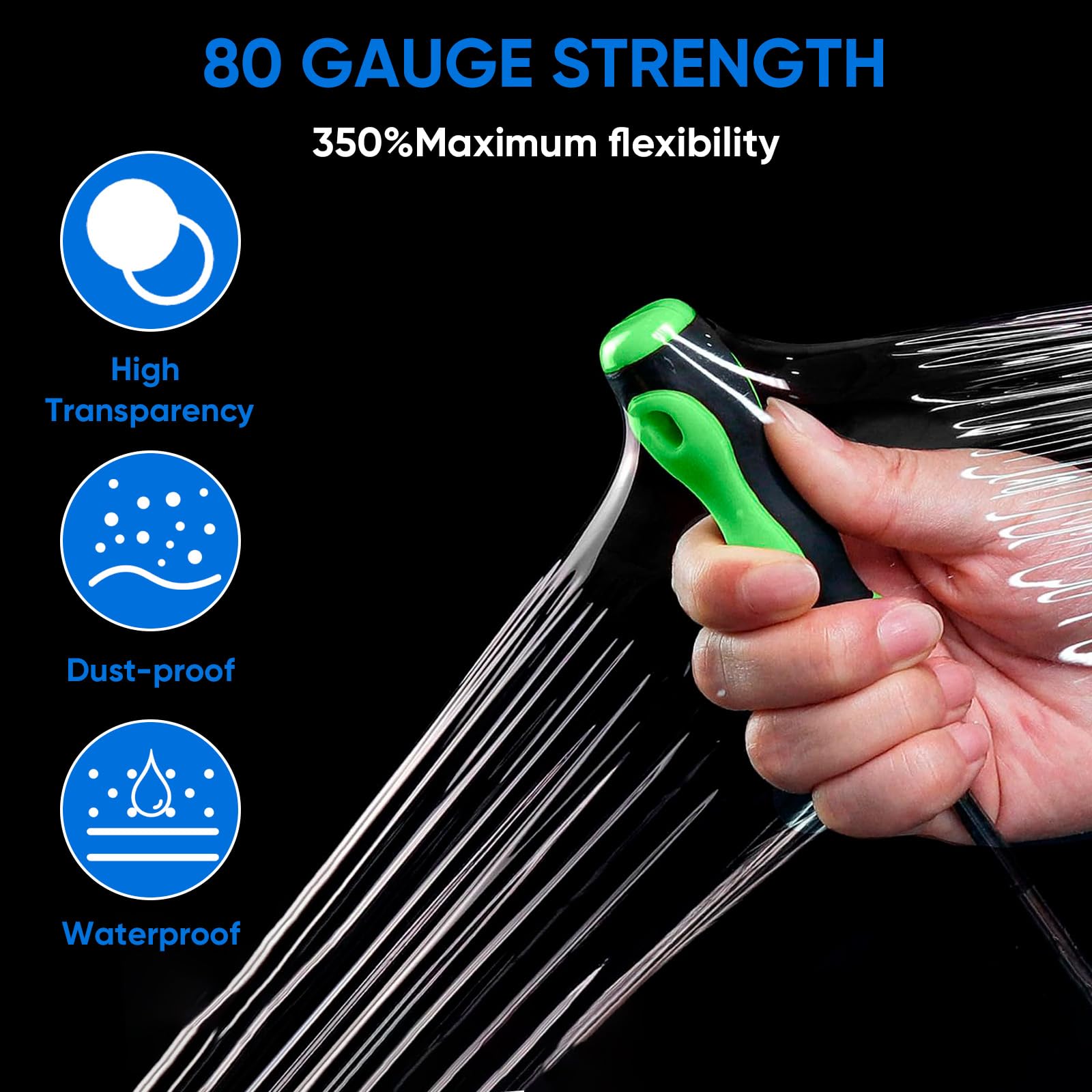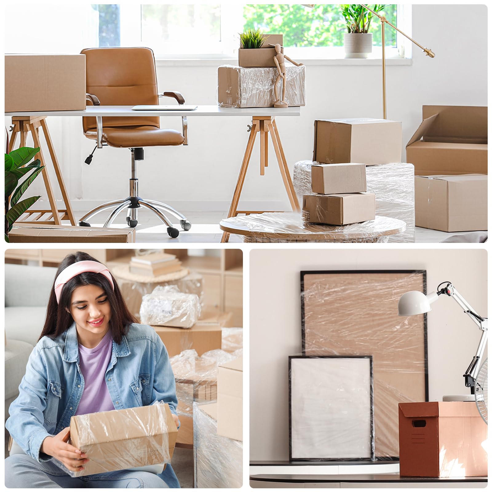 [WIDE APPLICATION] Our moving wrapping plastic roll is perfect for homeowners and small shop owners. It can wrap moving boxes, TV, cover furniture to protect its surface, wrap travel luggage, and wrap pallets. You may find much more great use beyond these. The stretch wrap rolls are essential packing supplies for moving