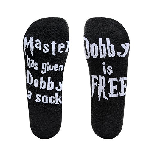 Cute and Funny Message: Socks bottom printed letters Master has given dobby a sock, dobby is free.