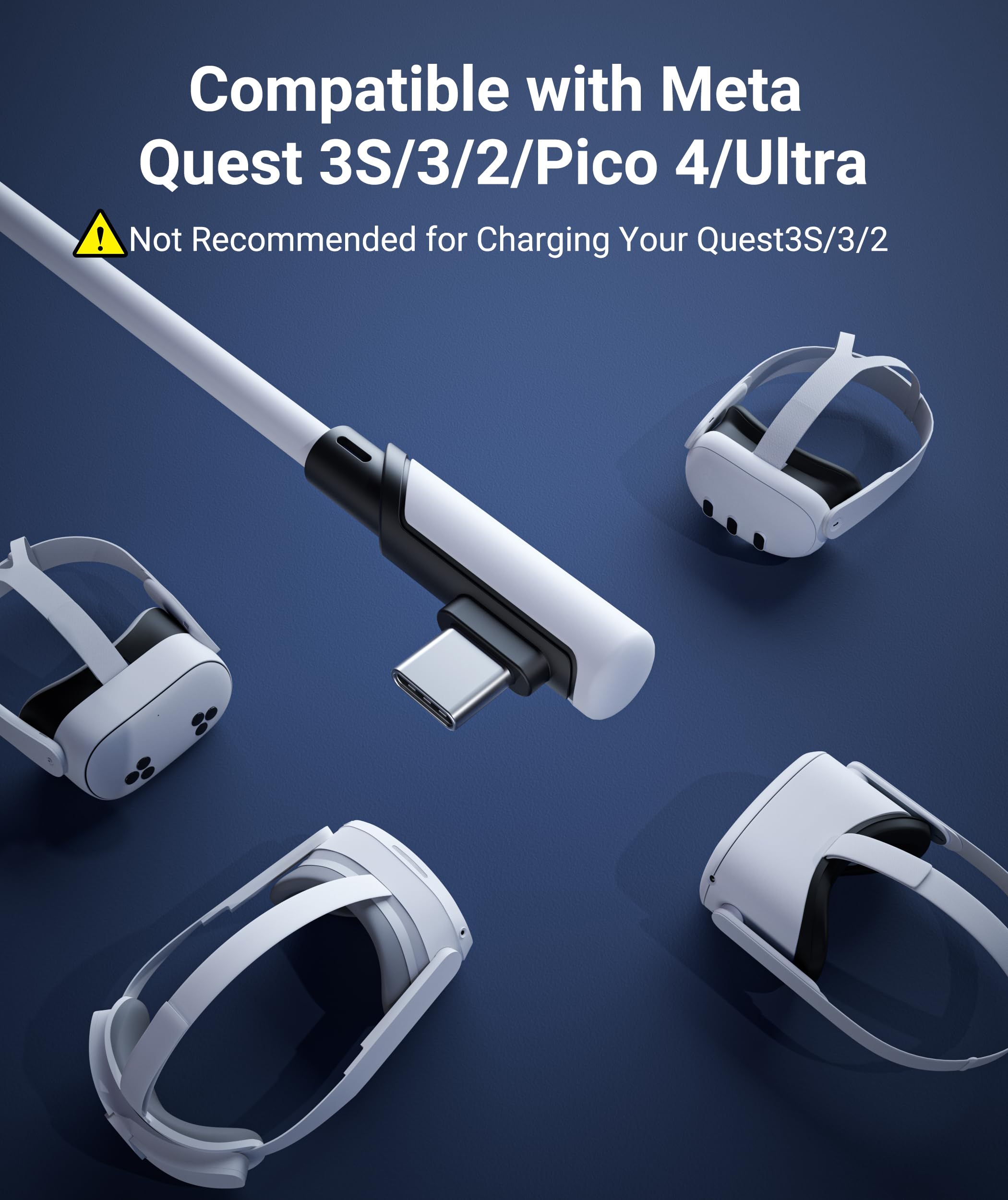 Compatible with Meta Quest & Pico Headsets: The VR link cable is compatible with Meta Quest 3S / Quest 3 / Quest 2 / Quest Pro / Pico 4. Connect your headset to a gaming PC to unlock SteamVR and PC VR content for a stable, immersive wired experience. Note: This cable is NOT for charging—please do not use it to charge your headset!