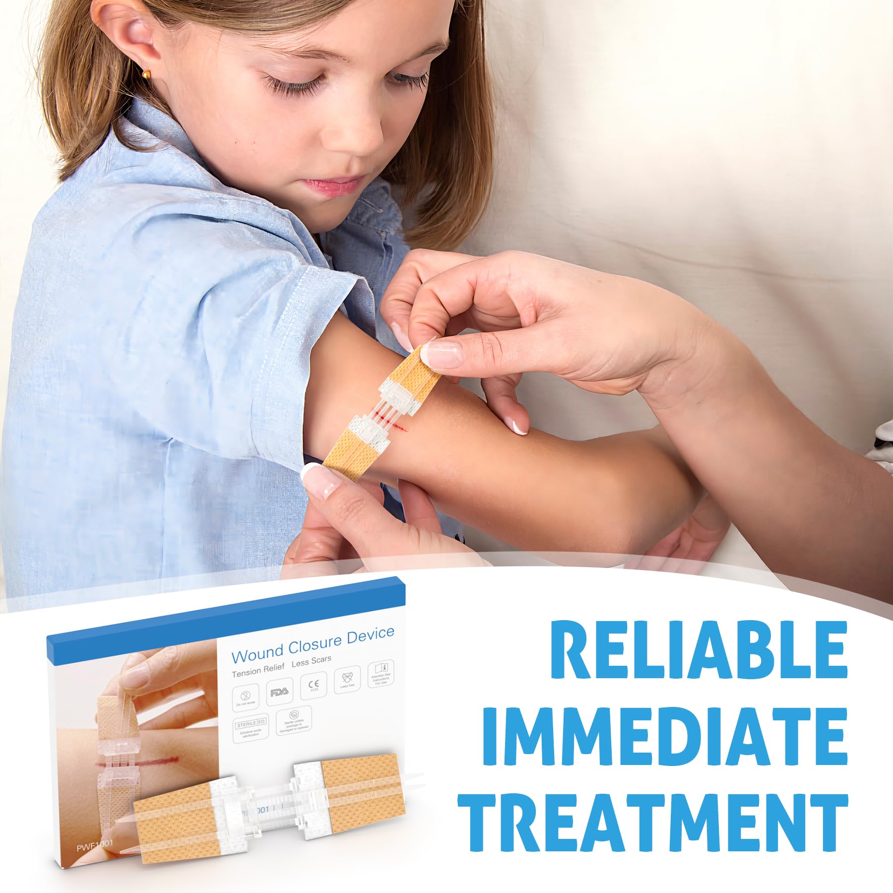 💖 【SAFE FOR ALL AGES】This zipper bandages ensures safety and protection when being used on your skin in case of emergency.(Please try not to let the wound come into contact with water!) Provides better wound protection than butterfly bandages and adhesive strips. Compared to traditional stitching, our wound closure is No-stitch needed, easy & painless to use. It effectively helps to reduce the risk of infection, secondary trauma & scarring, enhances recovery speeding and reduce Scarring