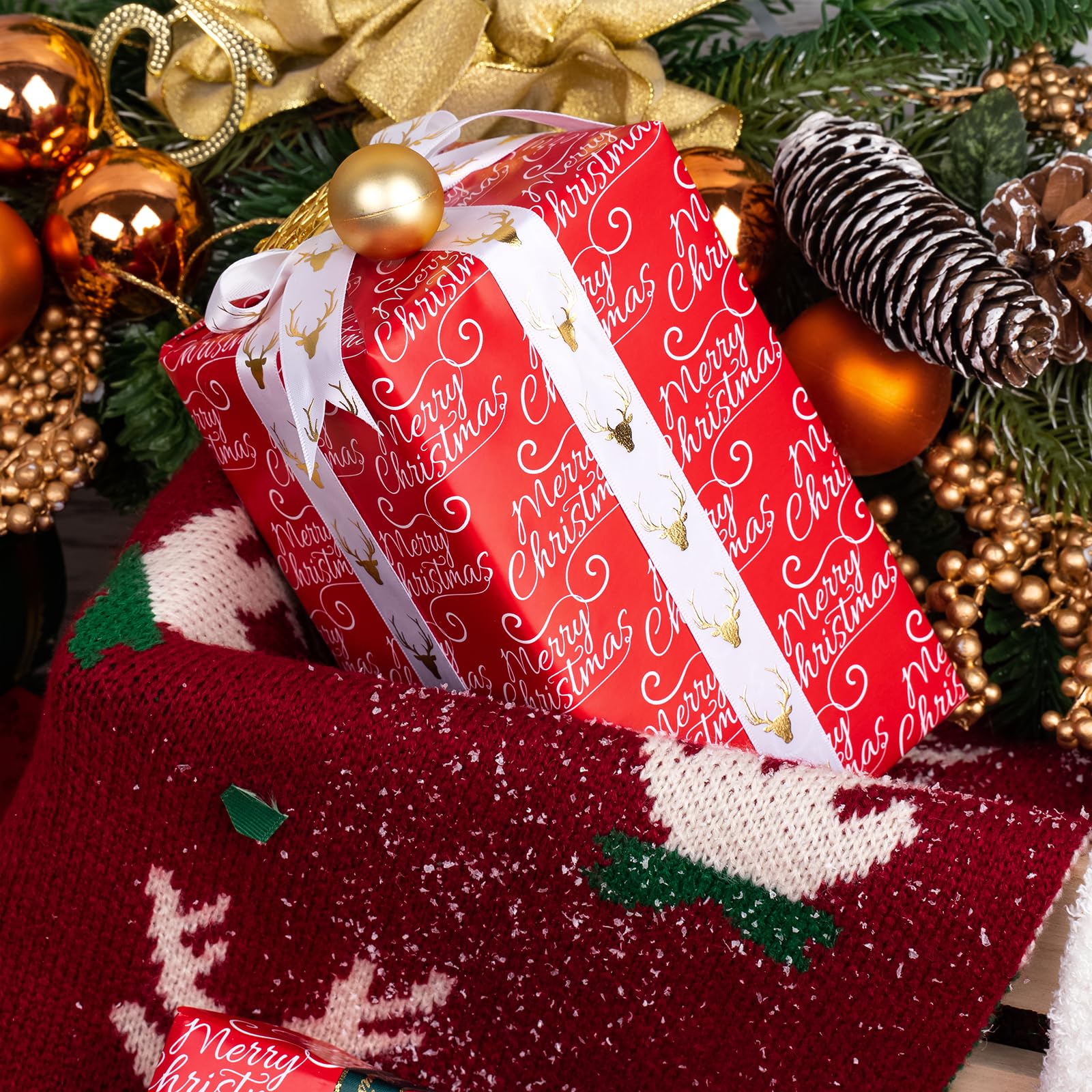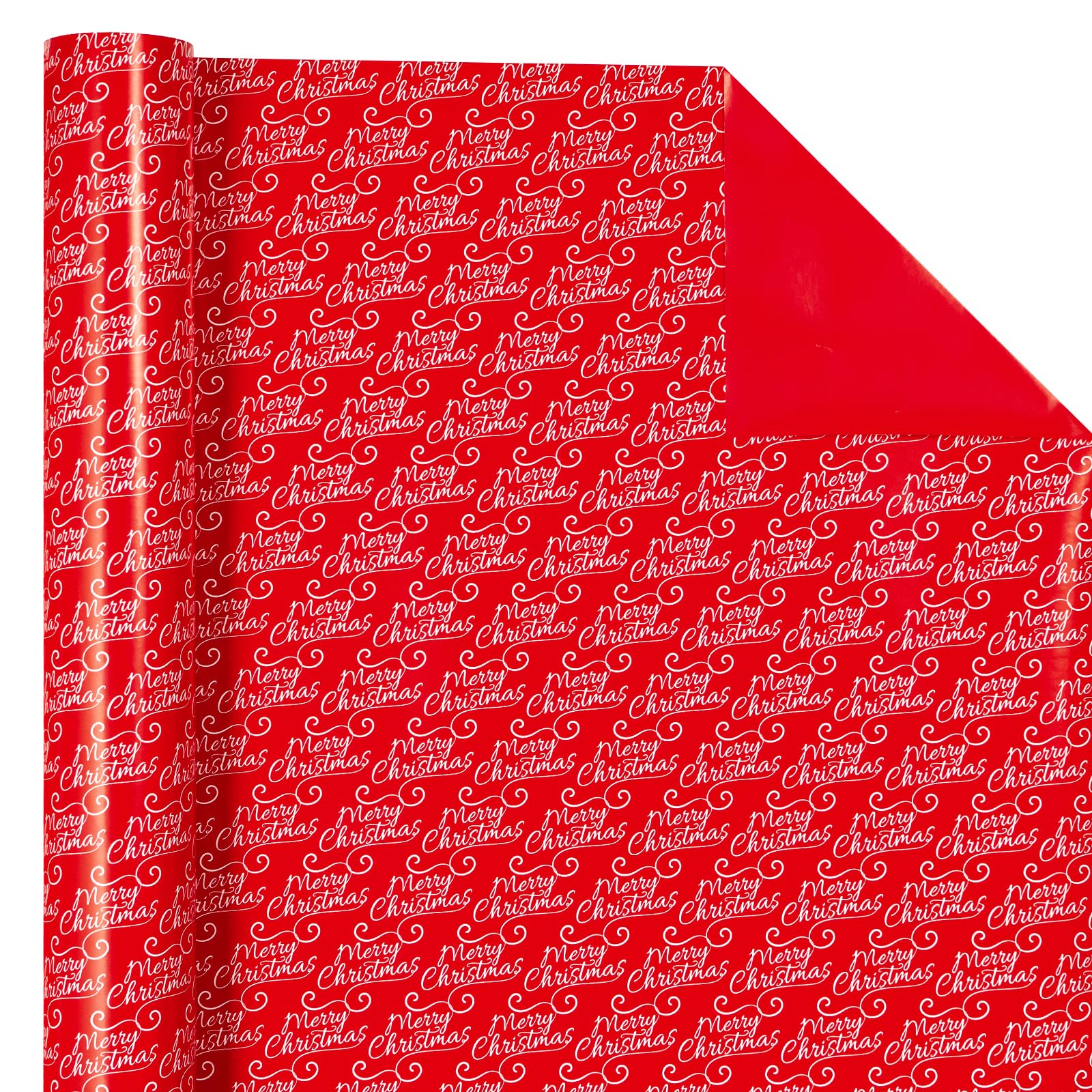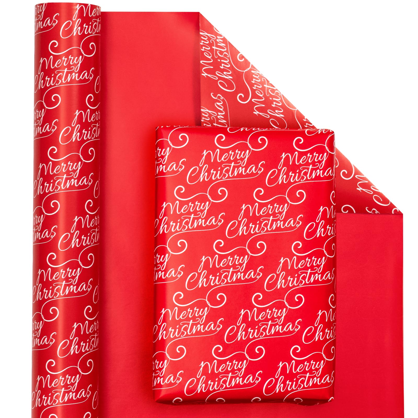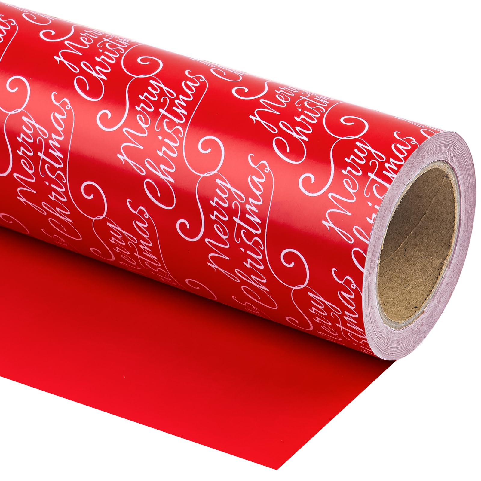 Reversible Design: "Merry Christmas" lettering printed on one side, solid red printed on the reverse. Two different designs make unique and varied gift presentations easy.
