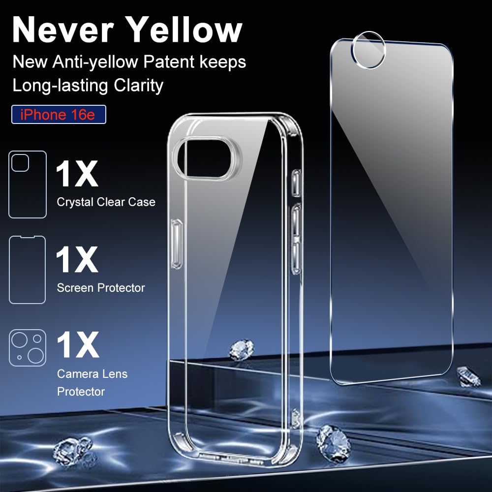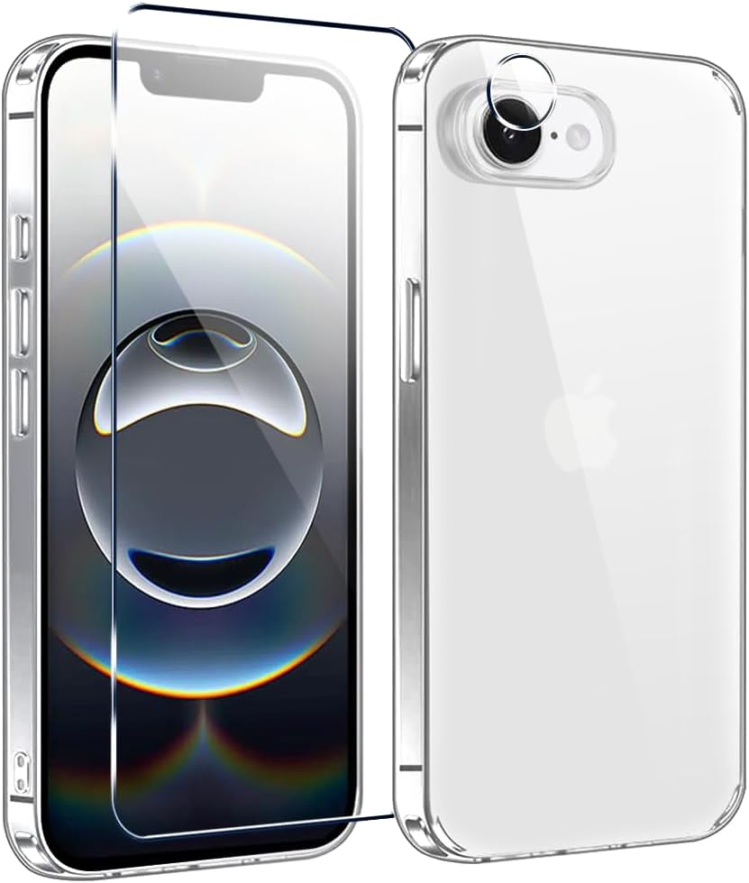 👍【Compatibility】Only Perfectly fits your iphone 16e 2025 6.1-inch. Supports wireless charging. it comes with 1 x High-Quality 9H tempered glass screen protectors and 1 x camera lens protectors.