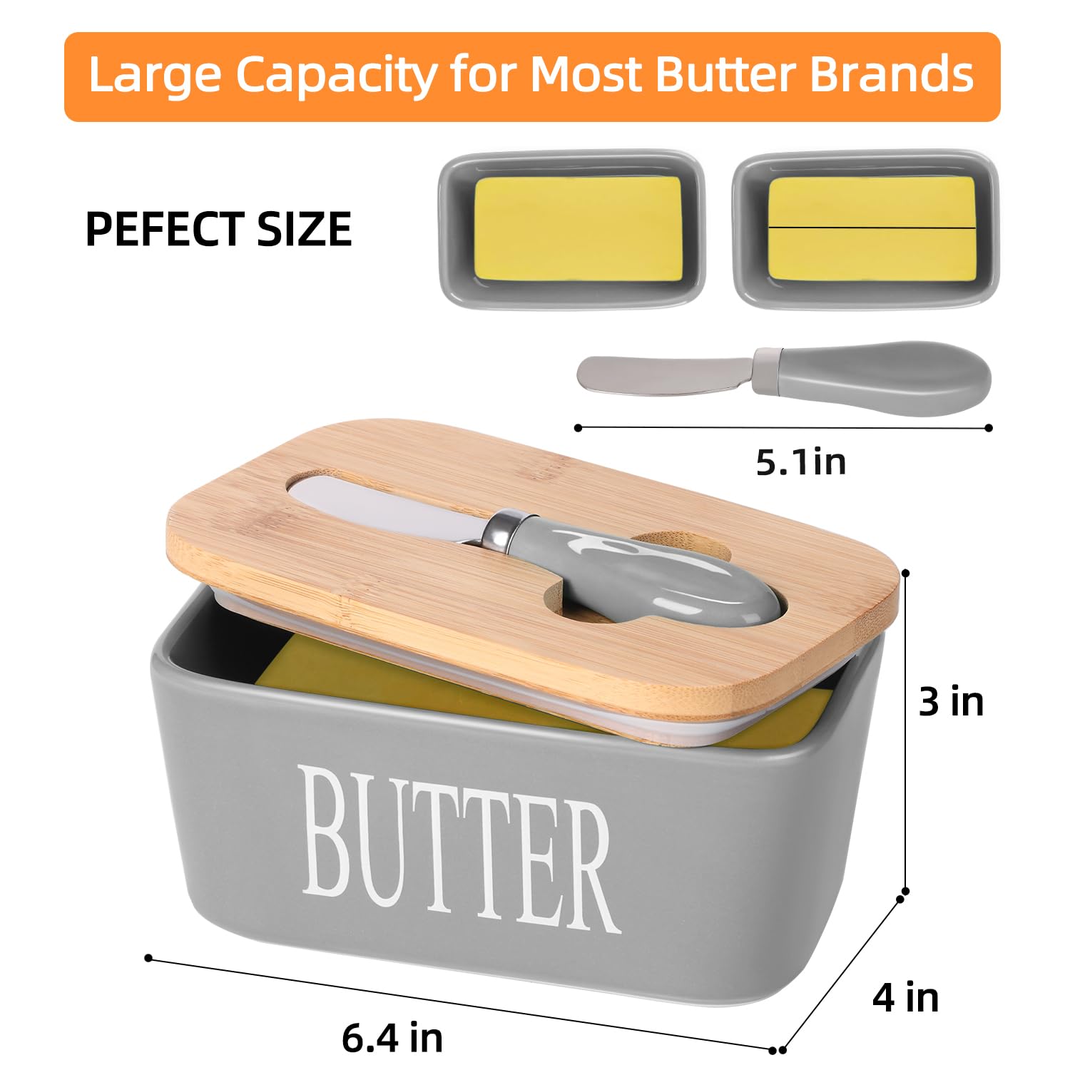 Large Capacity - The butter dish measures 6.4"x 4"x 3", wide and deep enough to store up to two standard sticks of butter. The butter container with bamboo cover lid works perfectly for both WEST and EAST / EUROPEAN coast butter. Our modern butter dish is a great gift for butter lovers