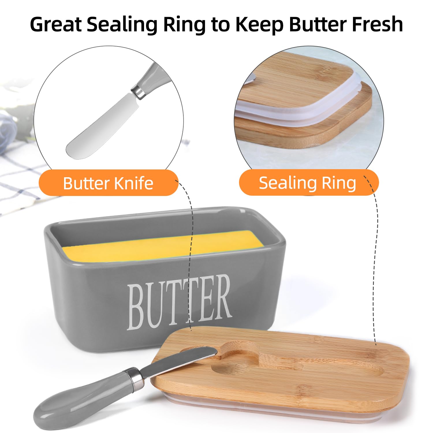 Multifunctional Design - Built in with a stainless steel butter knife, ensure the easy spread of butter. The removable sealing ring and non-stick porcelain are made for easy cleaning. When you pick up the lid, it won't be messy and make it easier to clean