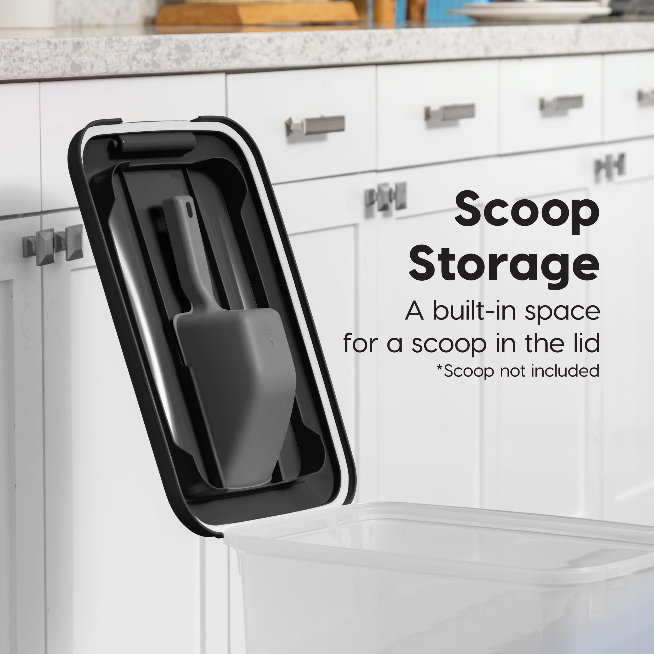 CLEAR CONTAINER BODY: The translucent body allows you to check the food level in just one glance. Quickly check the remaining amount before you head to the pet store. Designed with a wide top and secure latch for easy opening, scooping and cleaning