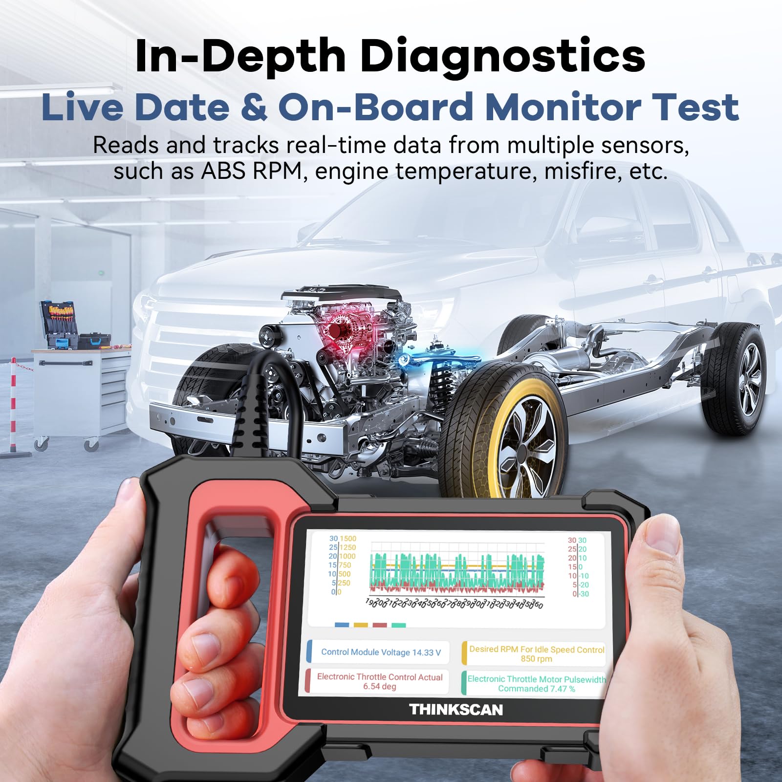 [Full OBD2 Functions] Thinkscan Plus S5 car scanner can support all 10 OBD2 test modes. Read Codes, Erase Codes, MIL Fault Indicator Light, Live Data, EVAP System Test, On-Board Monitor Test, View Freeze Frame, O2 Sensor Test, Vehicle Info, I/M Readiness, DTC Code Look-up, perform O2 sensor tests and carbon canister tests to ensure your vehicle is ready for all emission services.