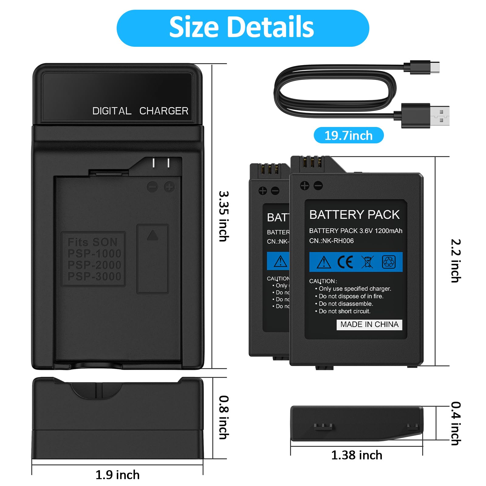 【High Capacity Performance】Our 2Pcs Rechargeable Battery Pack offers a real capacity of 1200mAh, ensuring long-lasting power for your PSP devices, including PSP-3000, PSP-3001, PSP-2000, PSP-2001 and more. Enjoy uninterrupted gaming sessions with our reliable PSP battery.