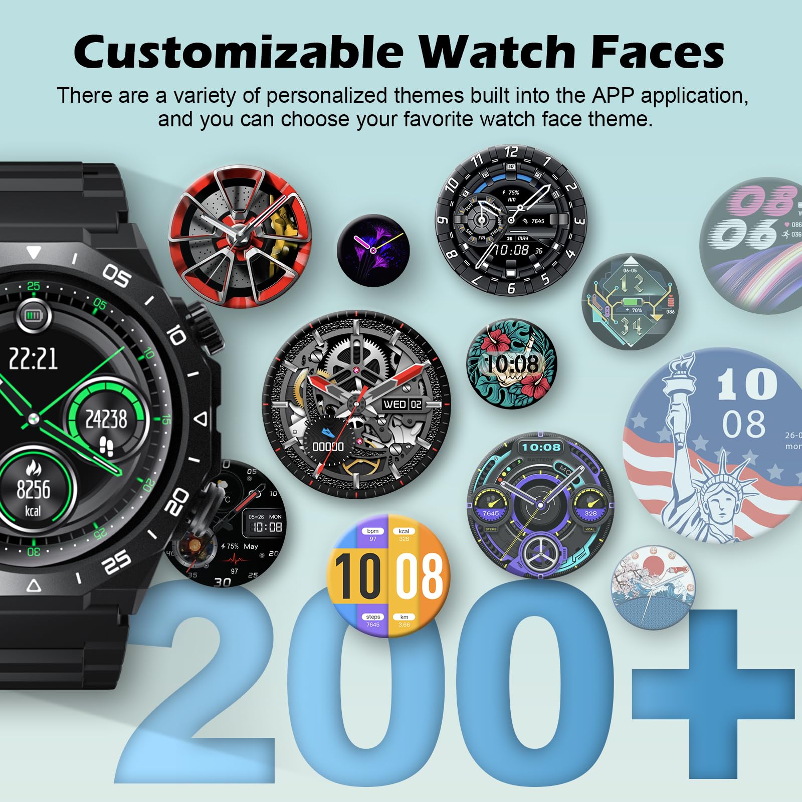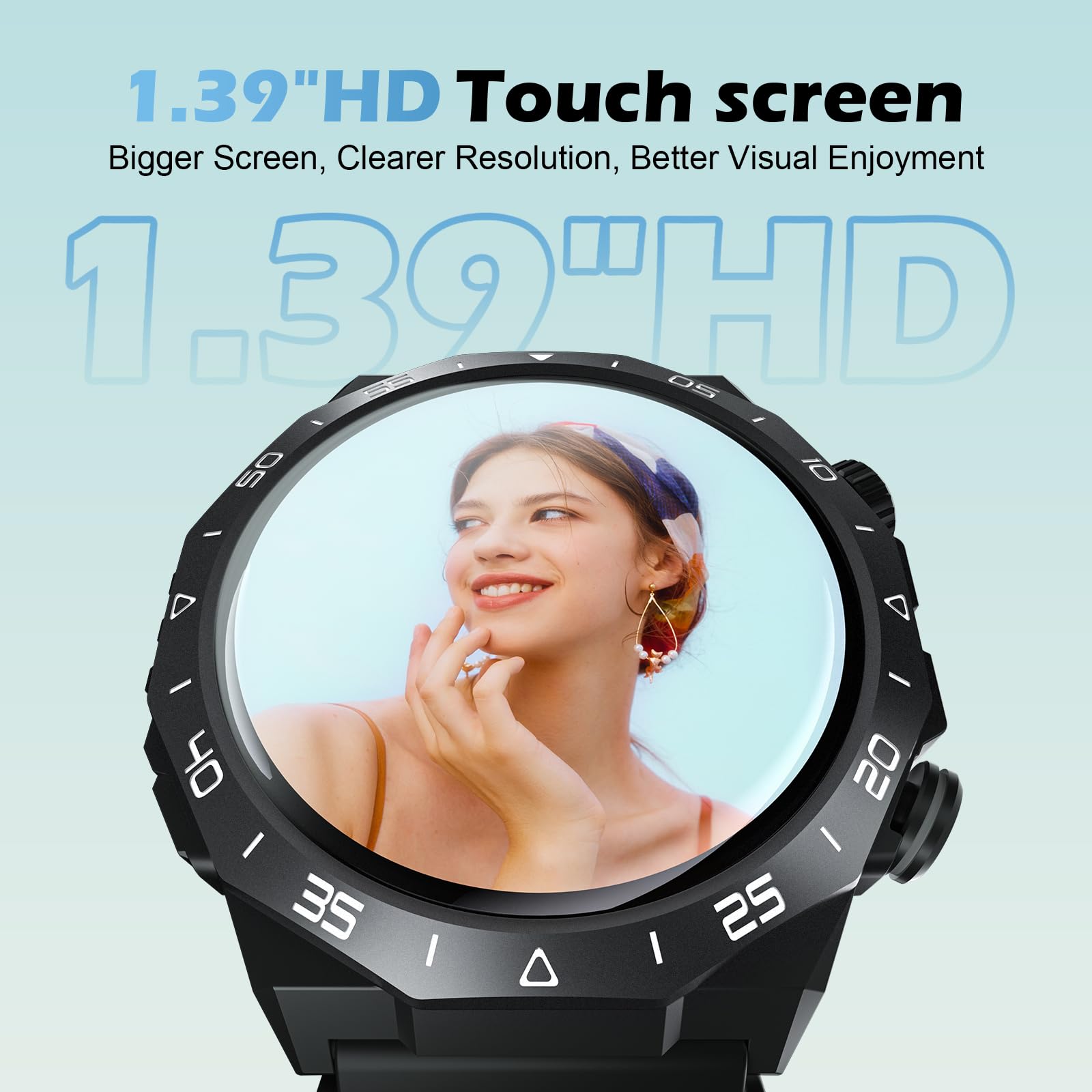 1.39" HD Touchscreen Smart Watch: The smartwatch is equipped with a 1.39" HD touchscreen, offering high resolution, clear and detailed display, as well as realistic color reproduction. The touch operation is smooth and responsive. At the same time, the men's smartwatch comes with over 200 watch faces to choose from, and you can also customize the watch face based on the application scenario.