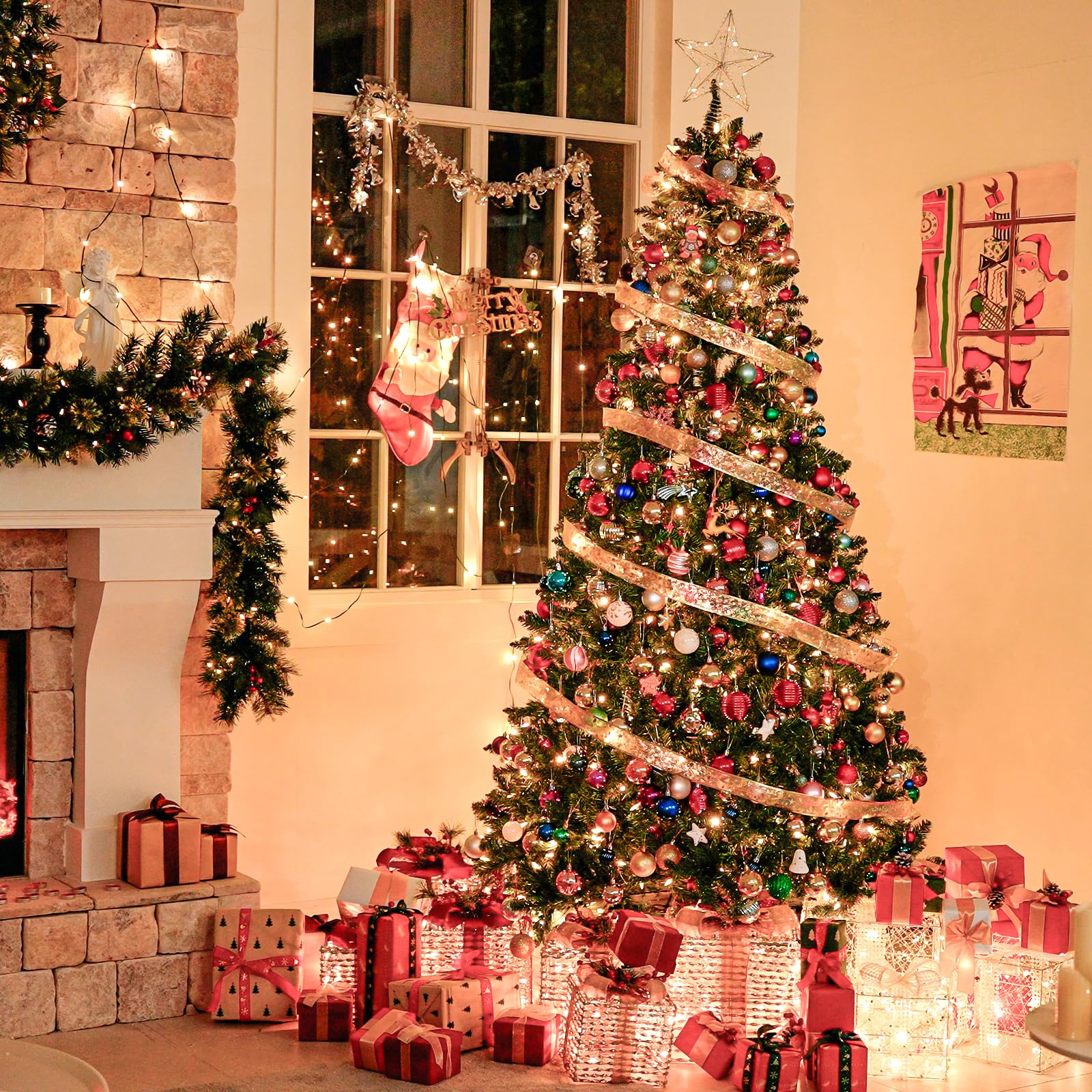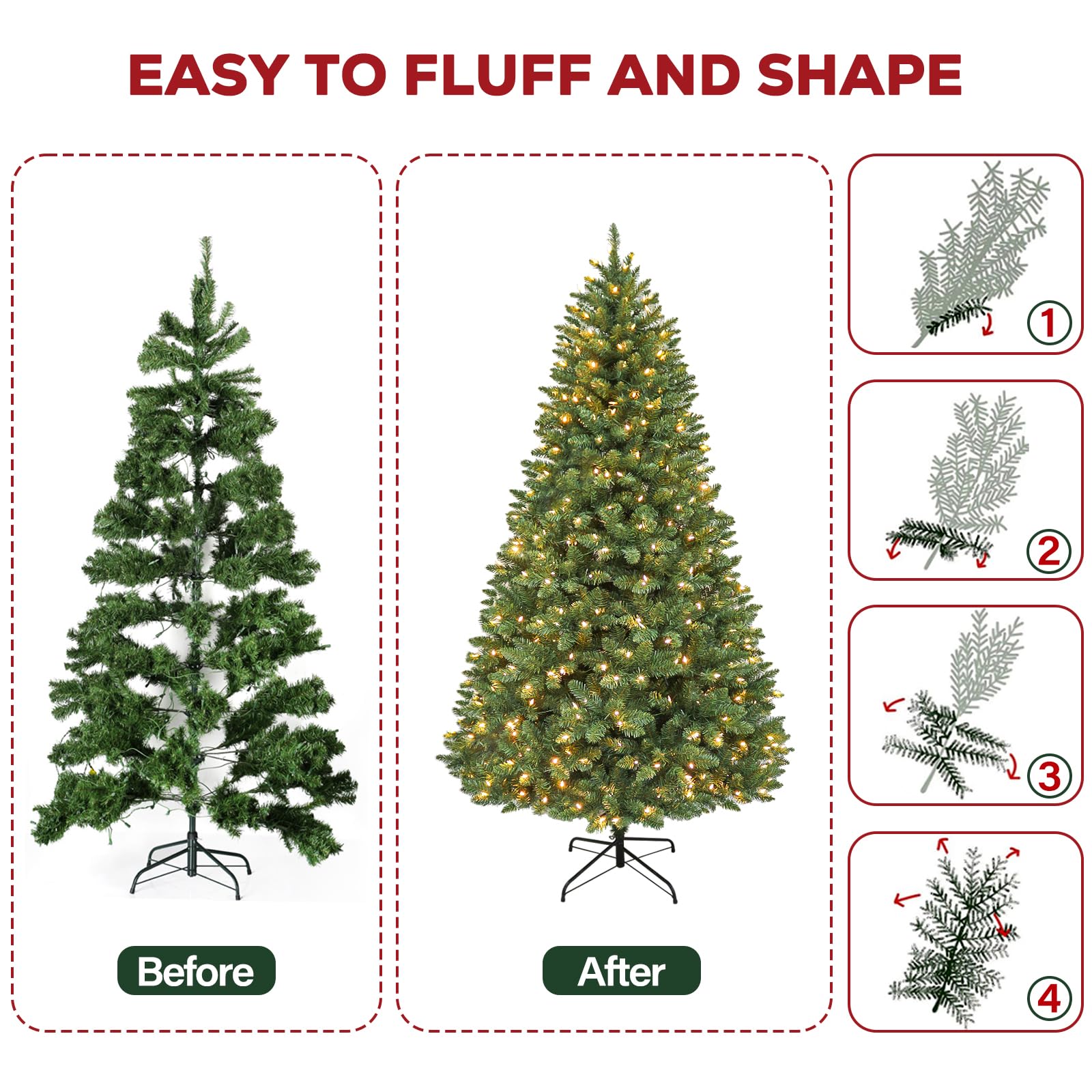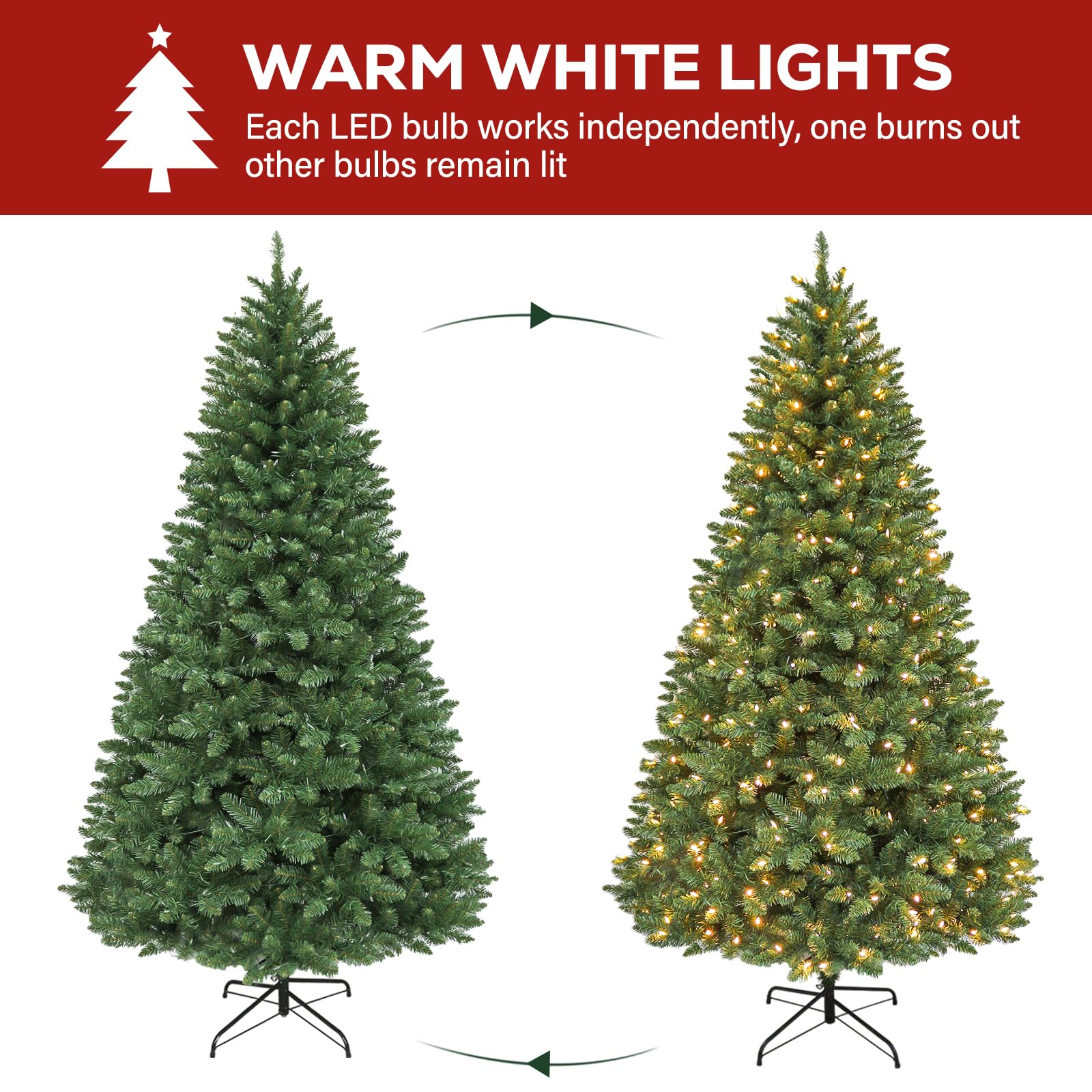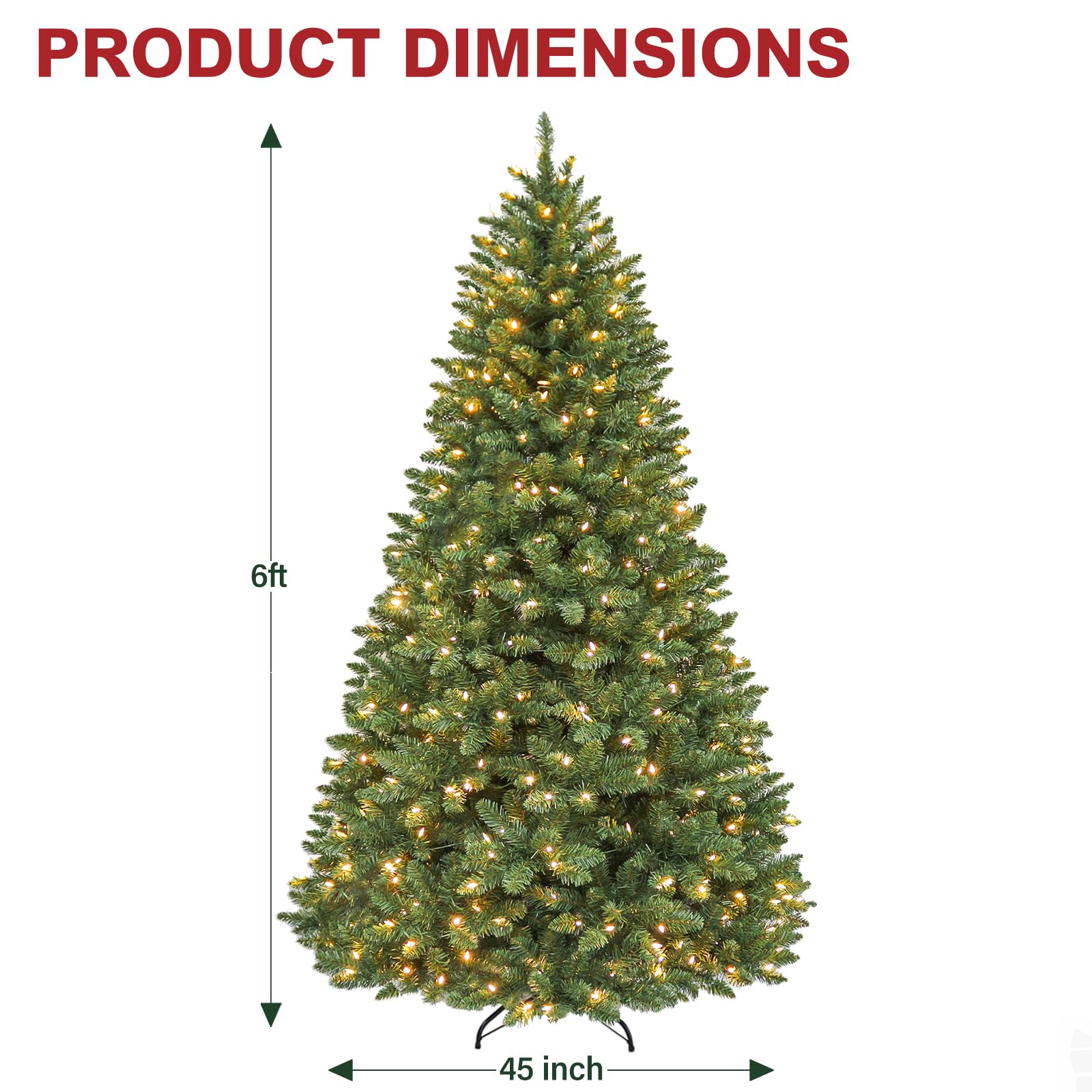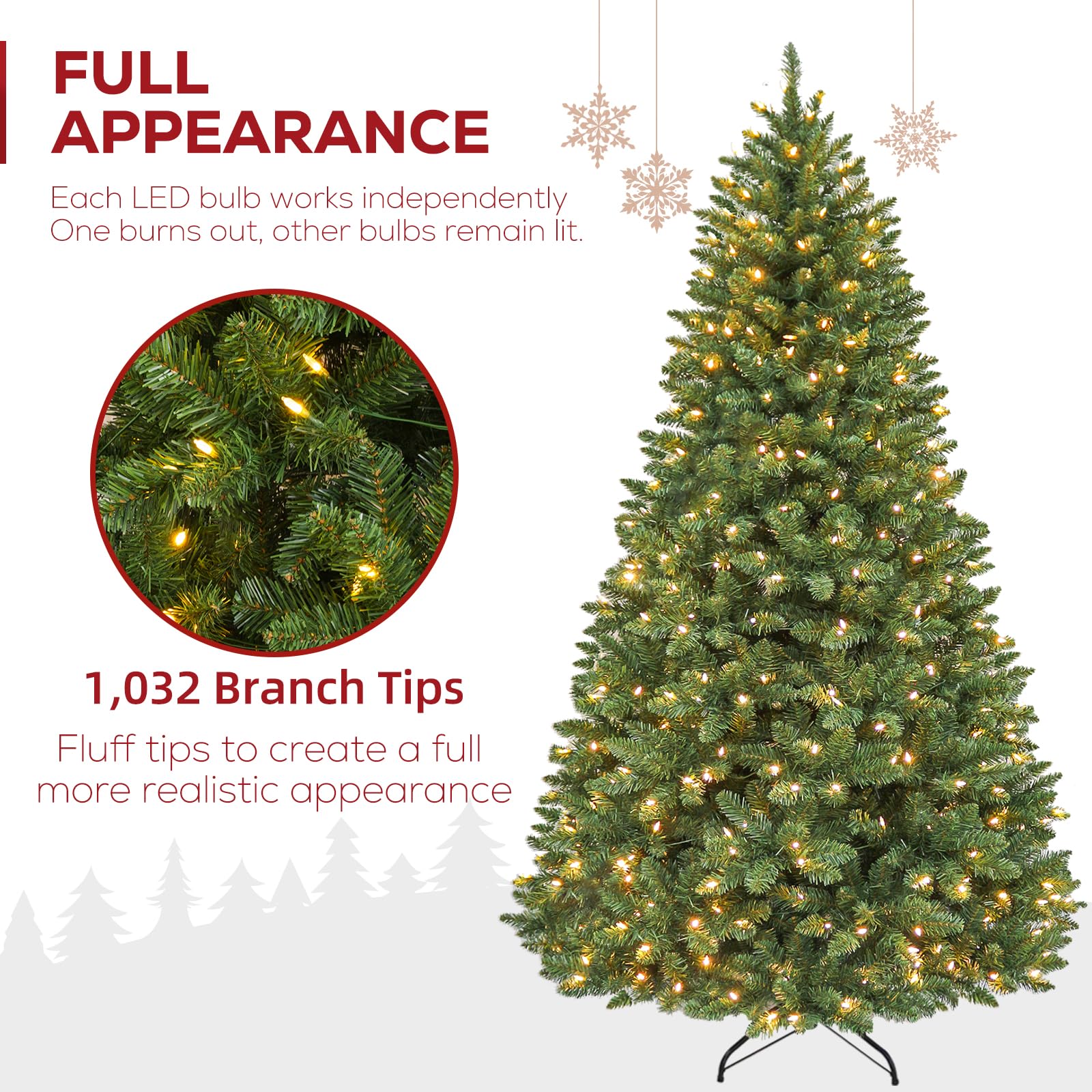 Natural & Full Look: The 6 Foot lush evergreen boasts 1032 branch tips for a full look, pre-strung with 250 warm white LED lights emitting a warm natural glow. The prelit Christmas tree also provides abundant space to showcase your favorite holiday ornaments.