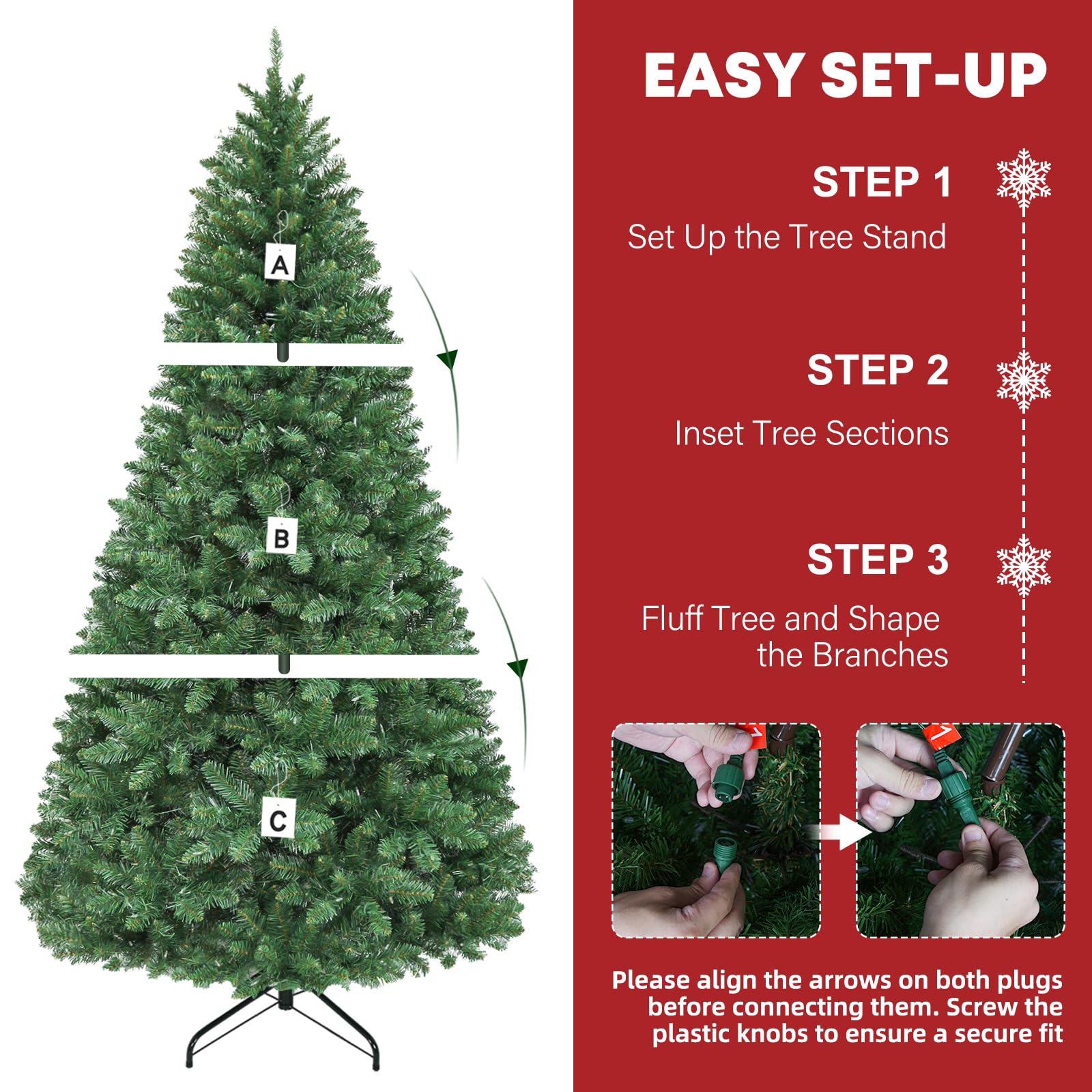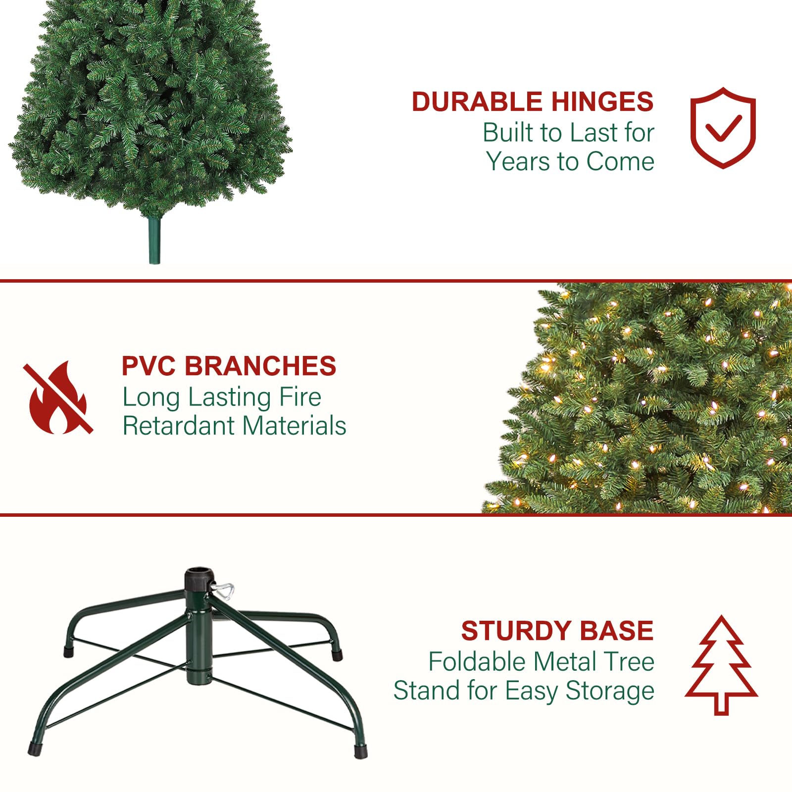 Effortless Assembly & Strore: Hykolity 6ft Christmas tree features convenient hinged branches, which allows for ease of assembly and disassembly. All the limbs are hinged around the center pole, the branches easily fall into place during set-up and fold back up for storage.
