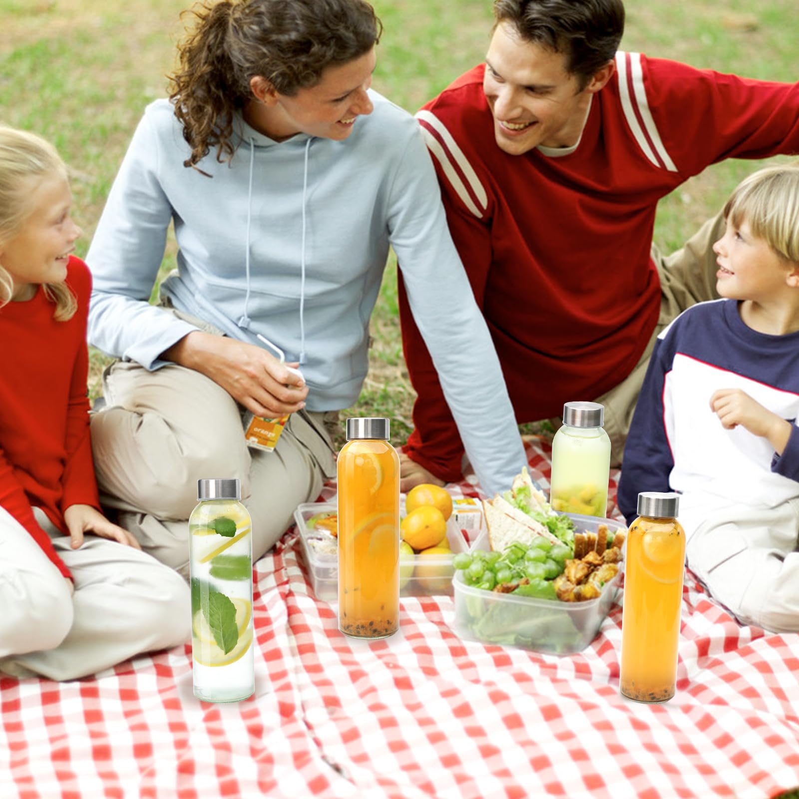 STAY HYDRATED:The slim and portable design means you can take your glass drinking bottle with cap everywhere, perfectly for garden parties, homemade drinks, weddings, picnics, school, work, gym, fitness, yoga and beach trips. Easily store in the fridge, lunch bag or car cup holder.