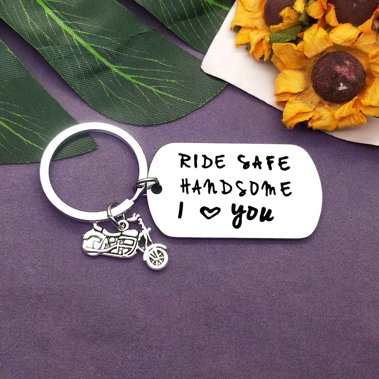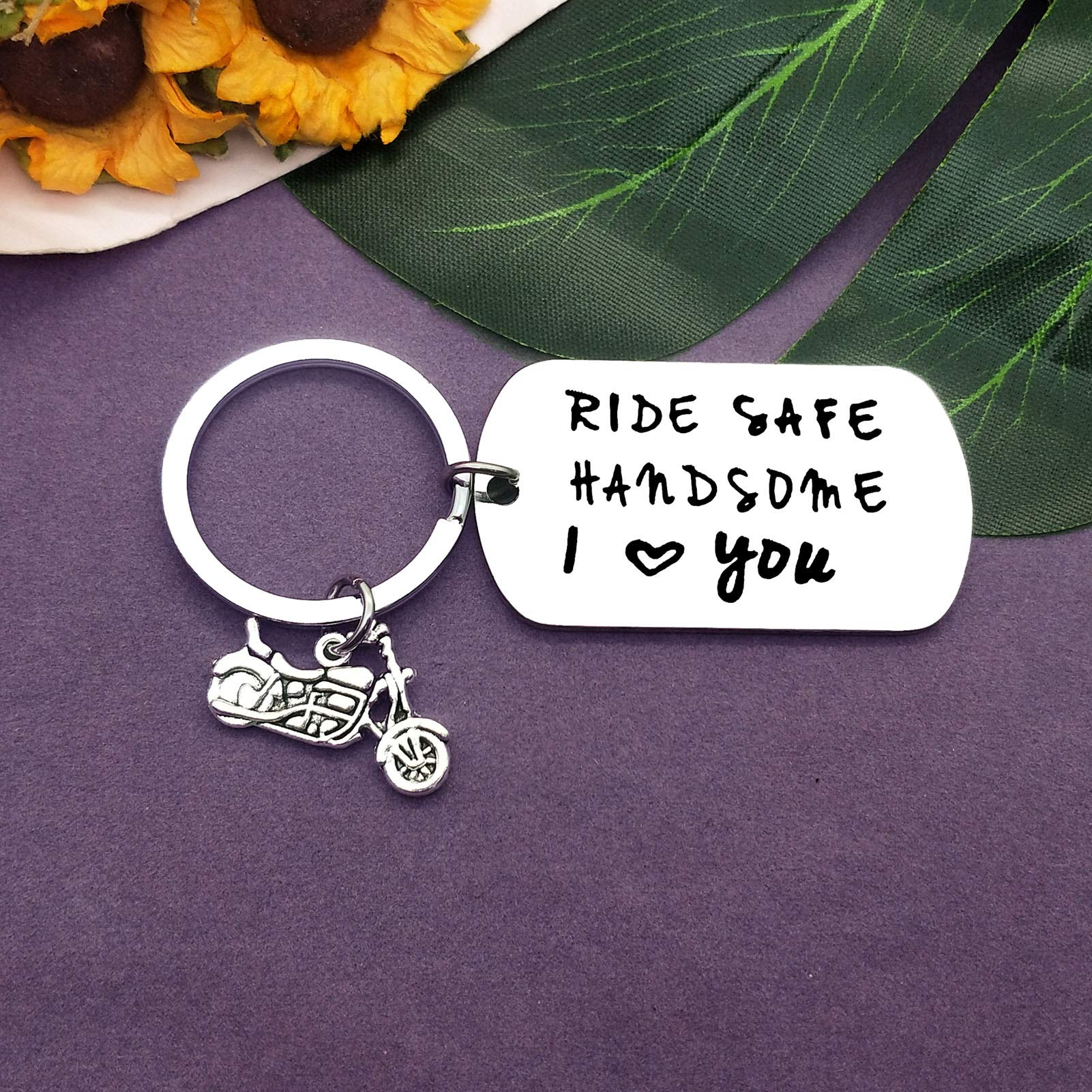 Funny Biker Gift Keychain:Ride Safe Handsome I Love You keychain,Say something simple and loving to someone you care about. Make sure your lover have this safe key chain with them on their journey!