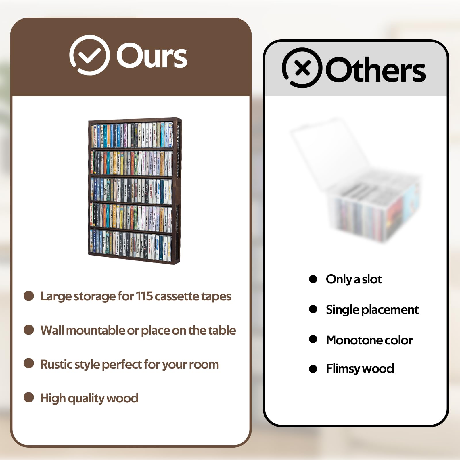 [LARGE STORAGE]Our Cassette Tape Rack could hold up to 115 cassette tapes,Perfect for Cassette Collections,music lovers
