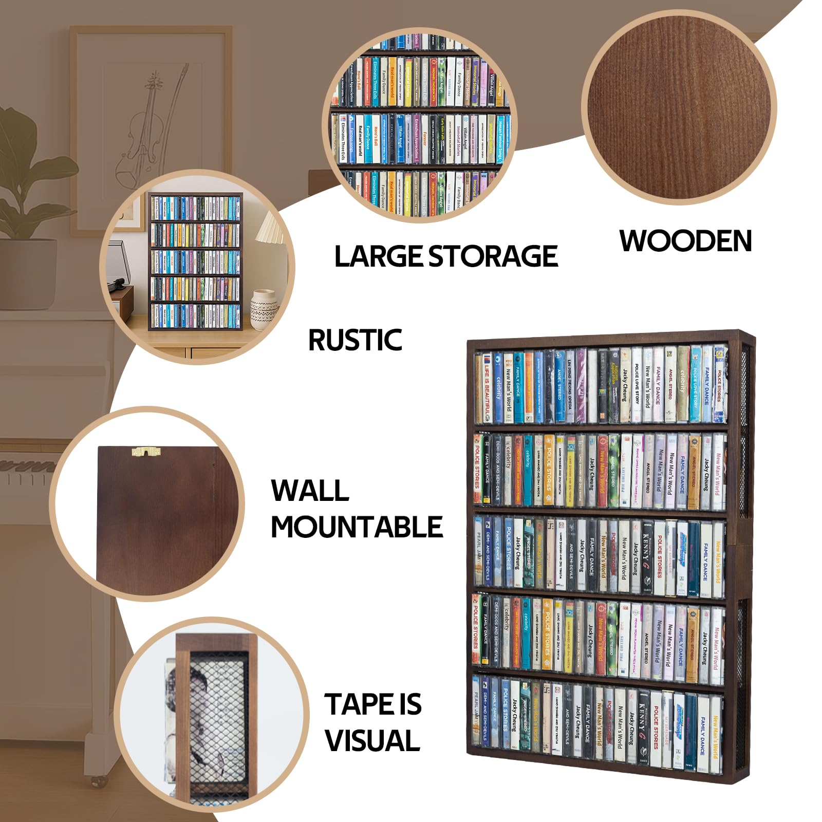 [AS A LIVING ROOM ORNAMENT]Rustic style, beautiful appearance and huge storage capacity can better display your tapes, placed in the living room, at a glance to catch everyone's eye