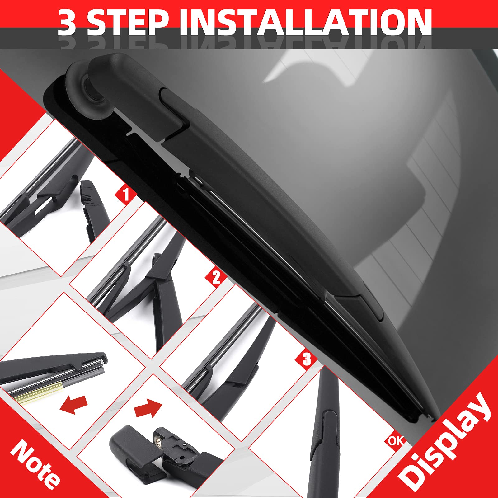 Package: Comes with 1pc wiper arm & cover, 1pc wiper blade 12 "(300mm), 1pc instruction manual, easy installment