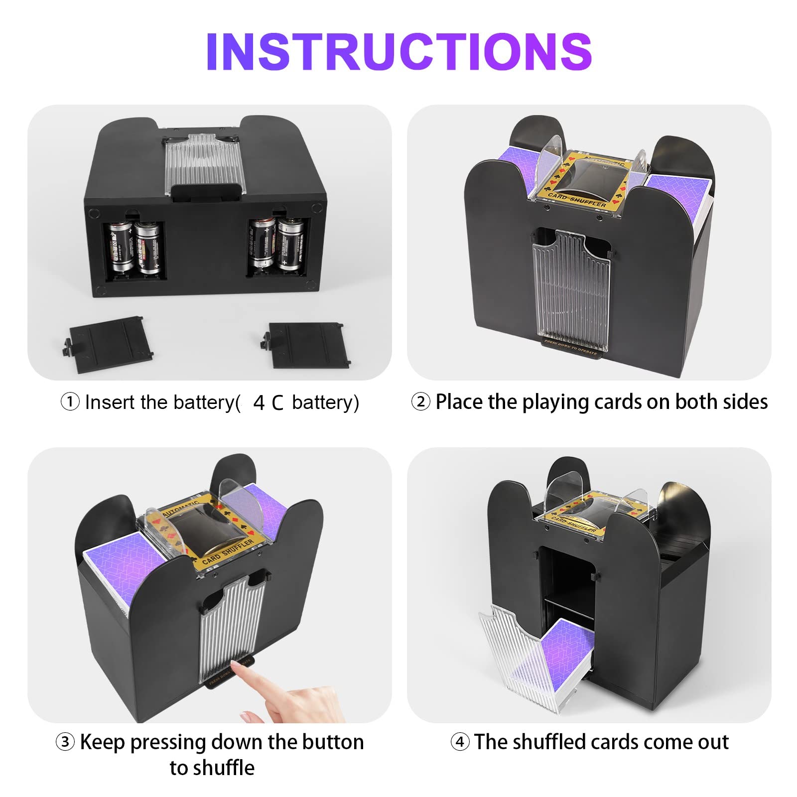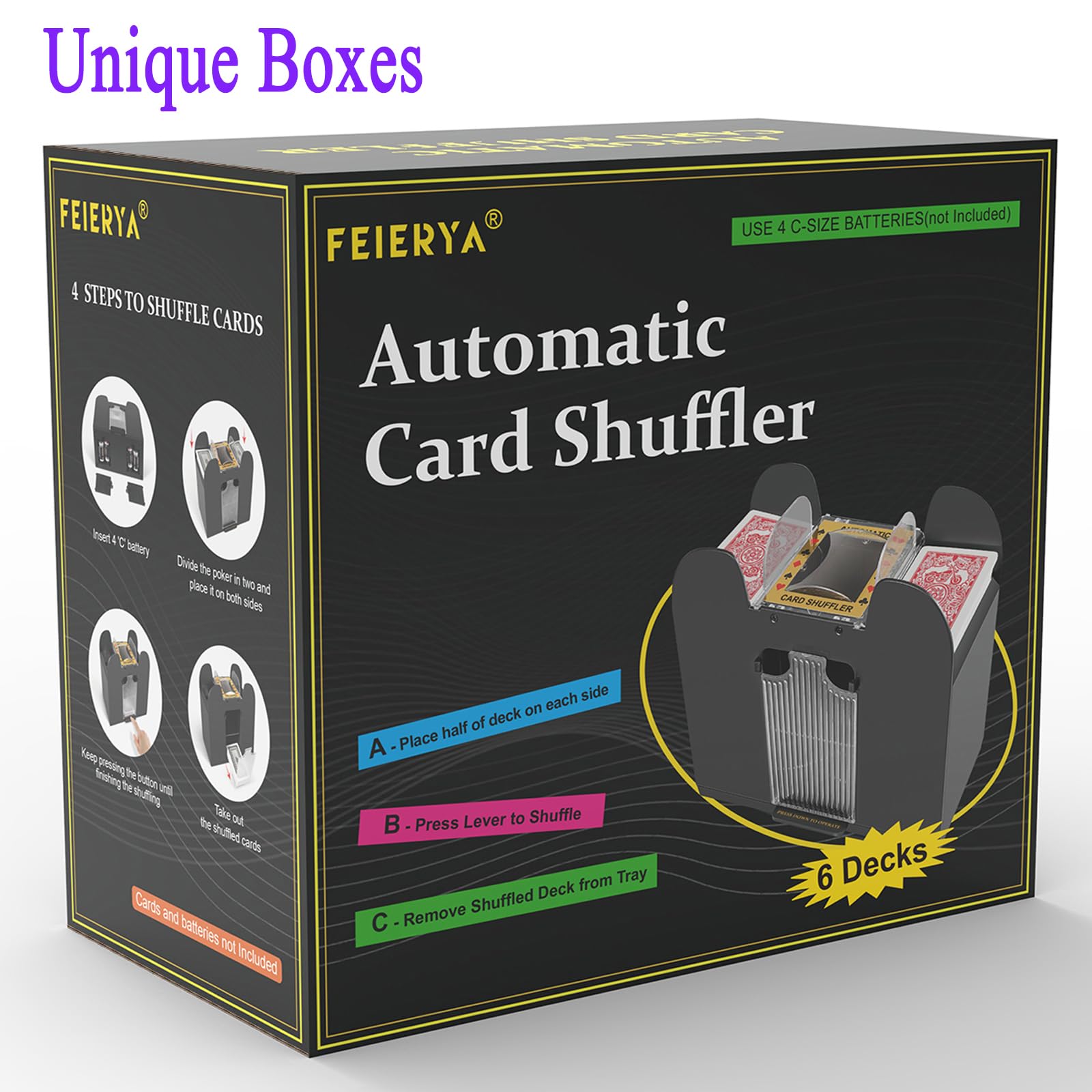 FEIERYA automatic card shuffler made of high-quality materials,easy to use,help you shuffles 6 deck poker cards in seconds( only battery operated,no usb power no recharged)
