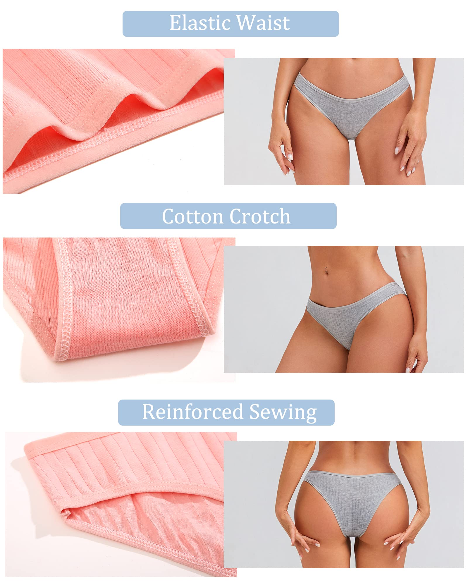 Cotton Underwear for Women: 95% PREMIUM COTTON, 5% spandex. Crotch inner lining: 100% cotton. Comfortable and breathable fabric with RIBBED TEXTURE is more lovely and cute. Women should be able to wear breathable fabric that's also fashionable/doesn't make feel frumpy.