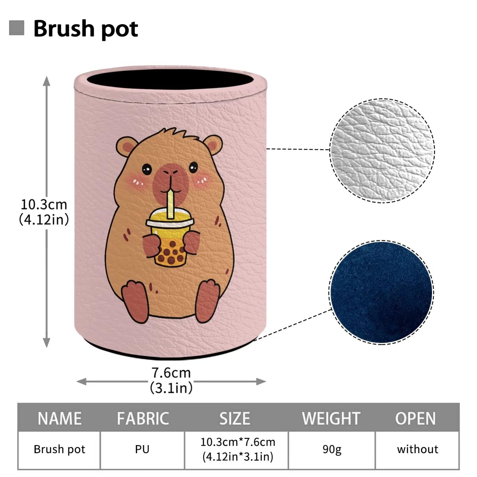 Cylinder Pencil Holders PU Leather Brush Pot cup organizer for women men teen girls boys desk office,Ideal stationery organizer gift.