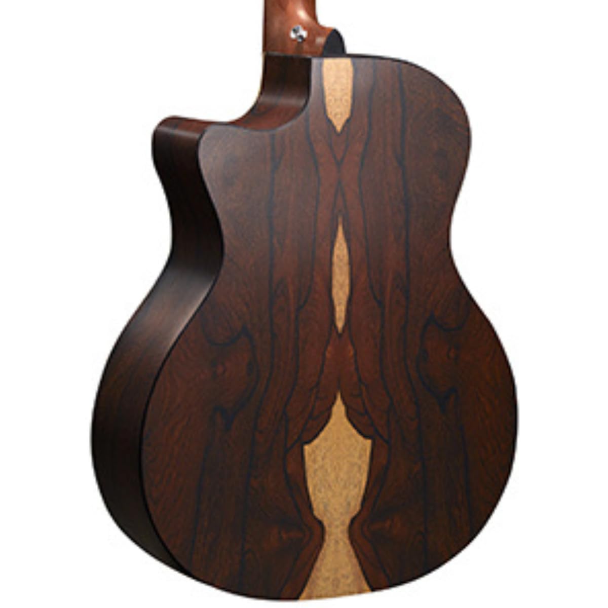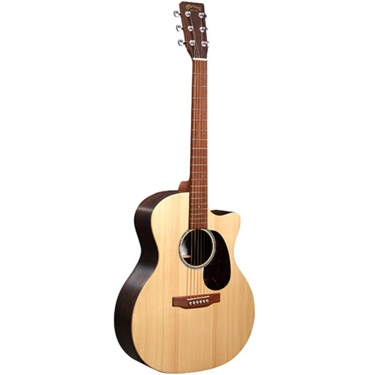 Crafted for play, the GPC-X2E acoustic-electric guitar boasts a hand-rubbed satin wood top and striking high-pressure laminate (HPL) back and sides-cocobolo with a spruce top or ziricote with a sapele top-for enhanced durability and aesthetics, preserving the classic Martin sound. Enjoy improved playability with a slimmer fingerboard, gently beveled edges, refined string spacing, and a modernized bridge for a smooth experience. Its Grand Performance body size offers a rich, balanced tone with extra bass, and a cutaway aids in reaching higher frets. The GPC-X2E showcases an elegant abalone rosette, select hardwood neck, fingerboard, and bridge, along with Martin E-1 electronics featuring a built-in tuner and volume, tone, and phase controls for versatile amplification. Each X Series model includes a softshell case.