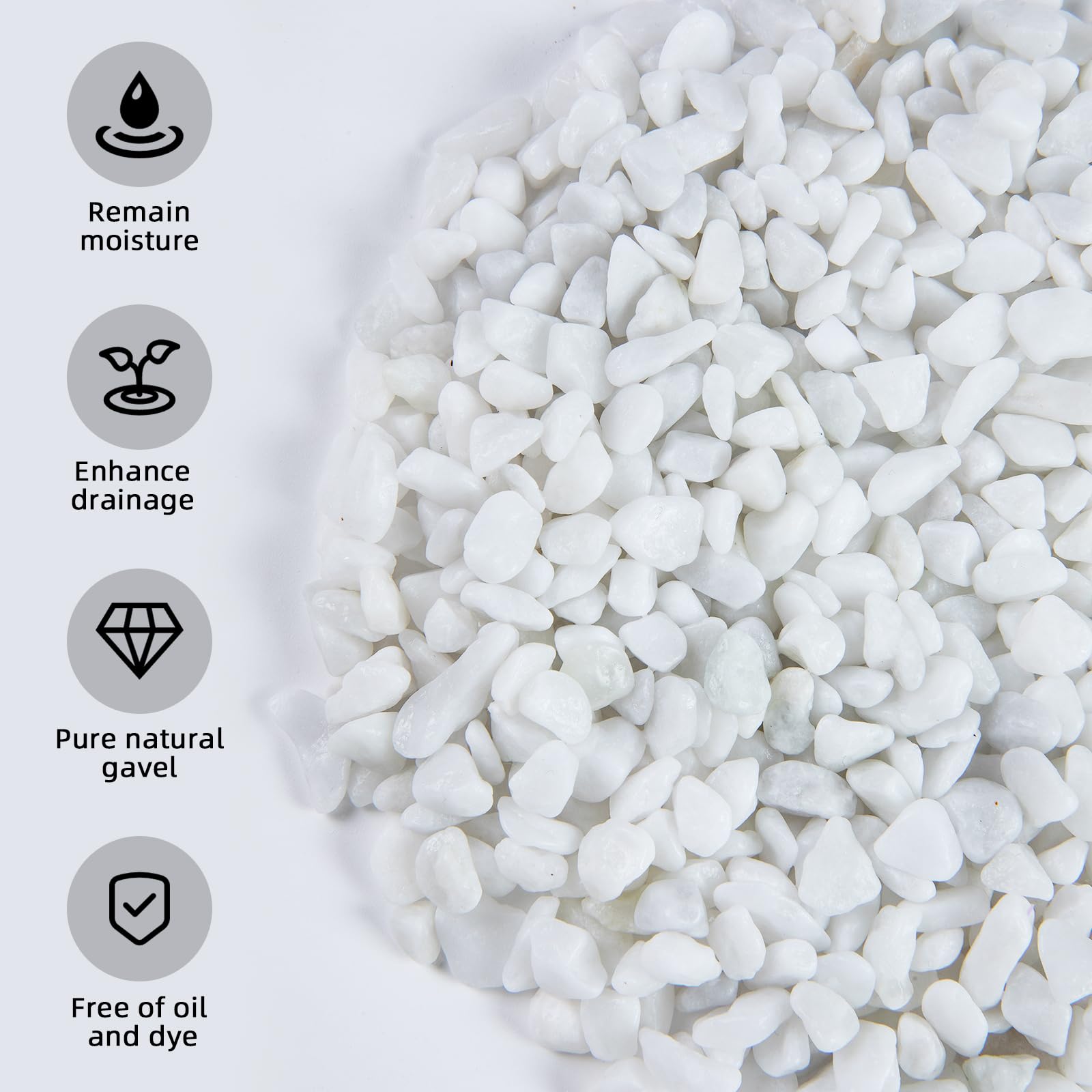 【Color and Size】Ausluru river rocks size range in length approx from 0.2” to 0.3”. They are natural and as a result some may be broken or out of shape, oval or round, thick or thin. The color of this river rock is natural so it may include a variety of different shades of white.