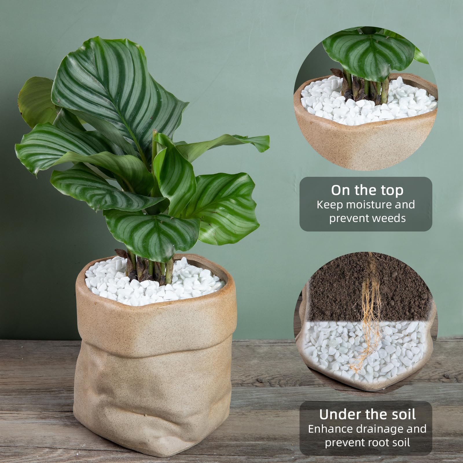 【Protect Plants】Ausluru silica gravel can protect your plants. They can absorbs excess heat and improve drainage, help with soil moisture retention in summer and insulate plants by keeping the cold away from their roots in winter.