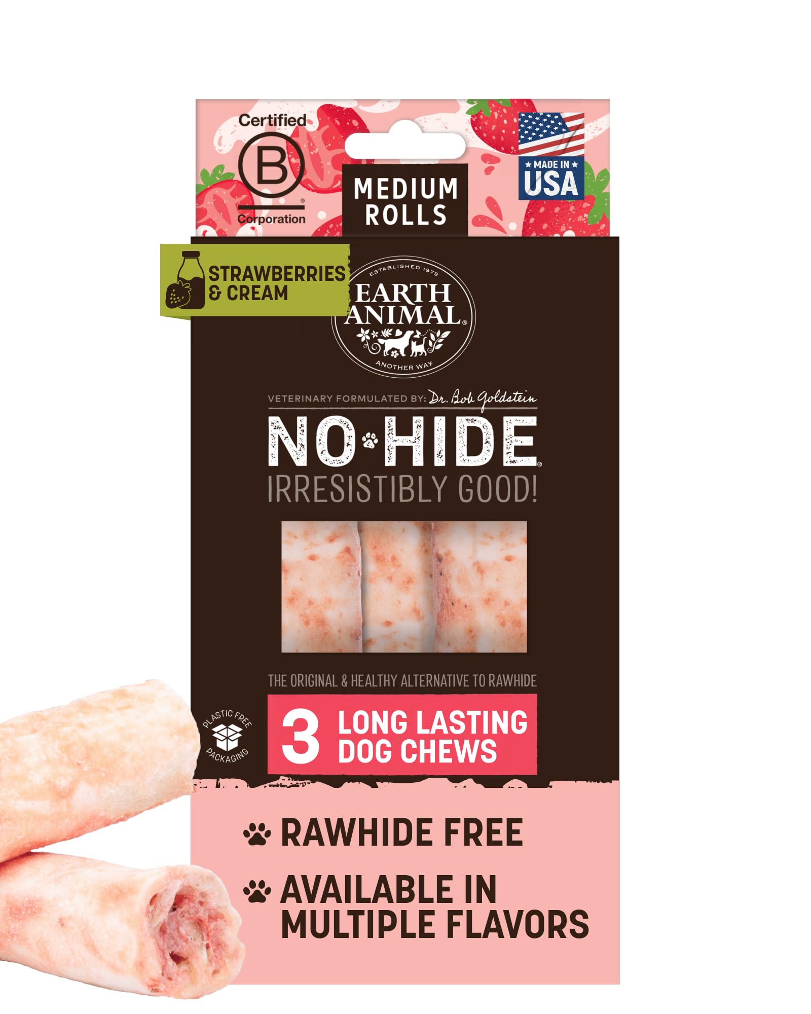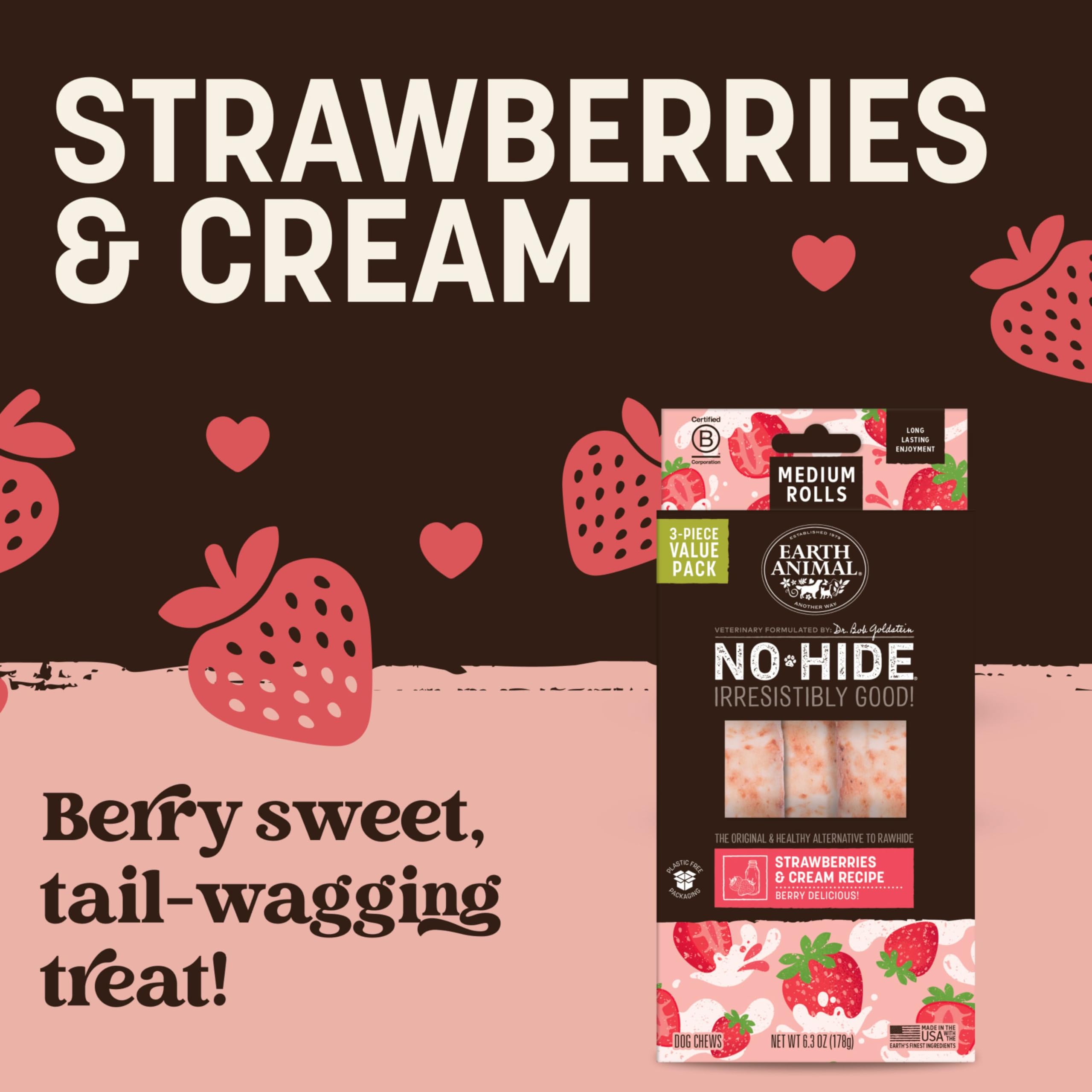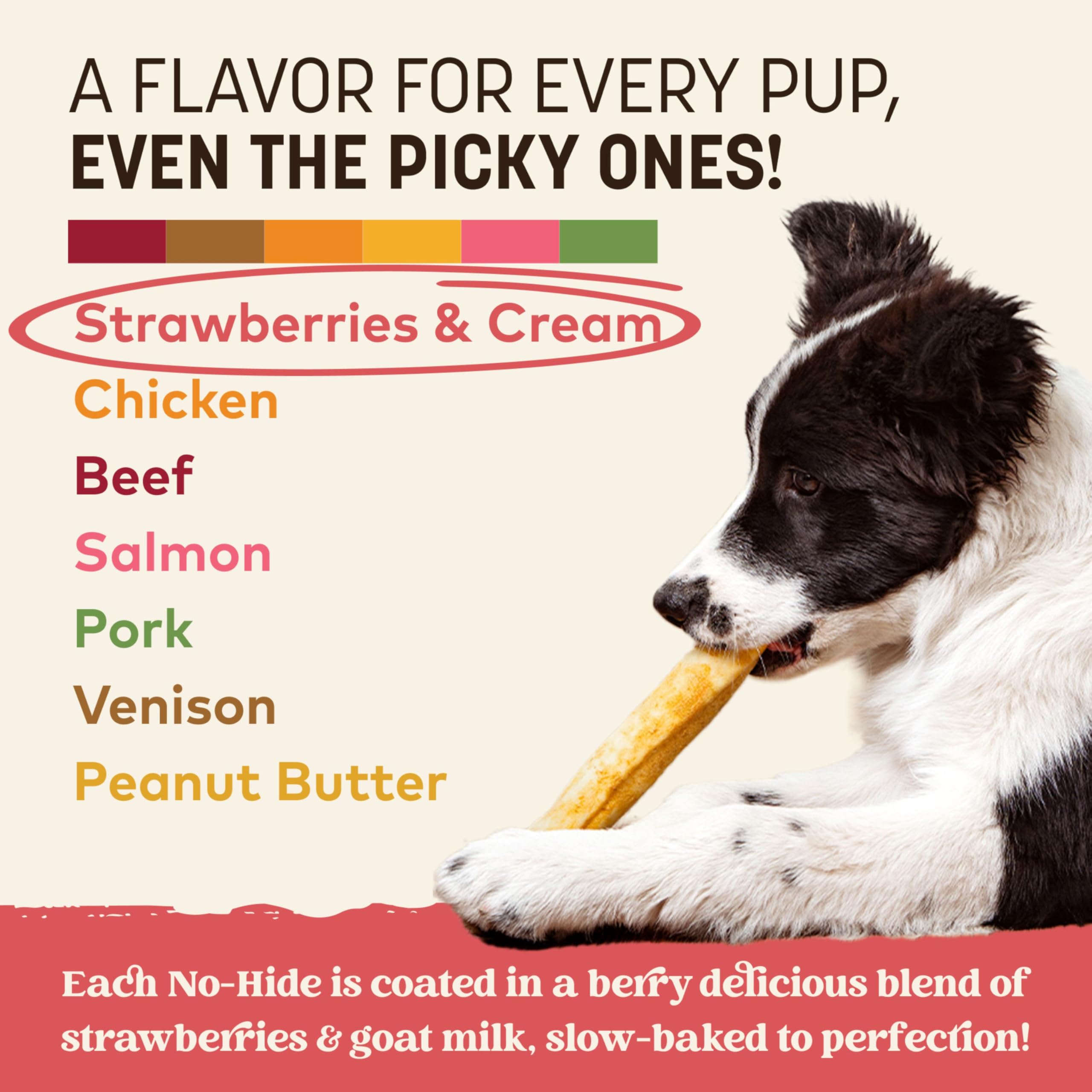 THERE'S NO-THING LIKE IT: No-Hide is the healthy alternative to rawhide & bully sticks. These all natural, easily digestive No-Hide Rolls are made with a refreshing blend of strawberries & goat milk. Great for teeth and gums