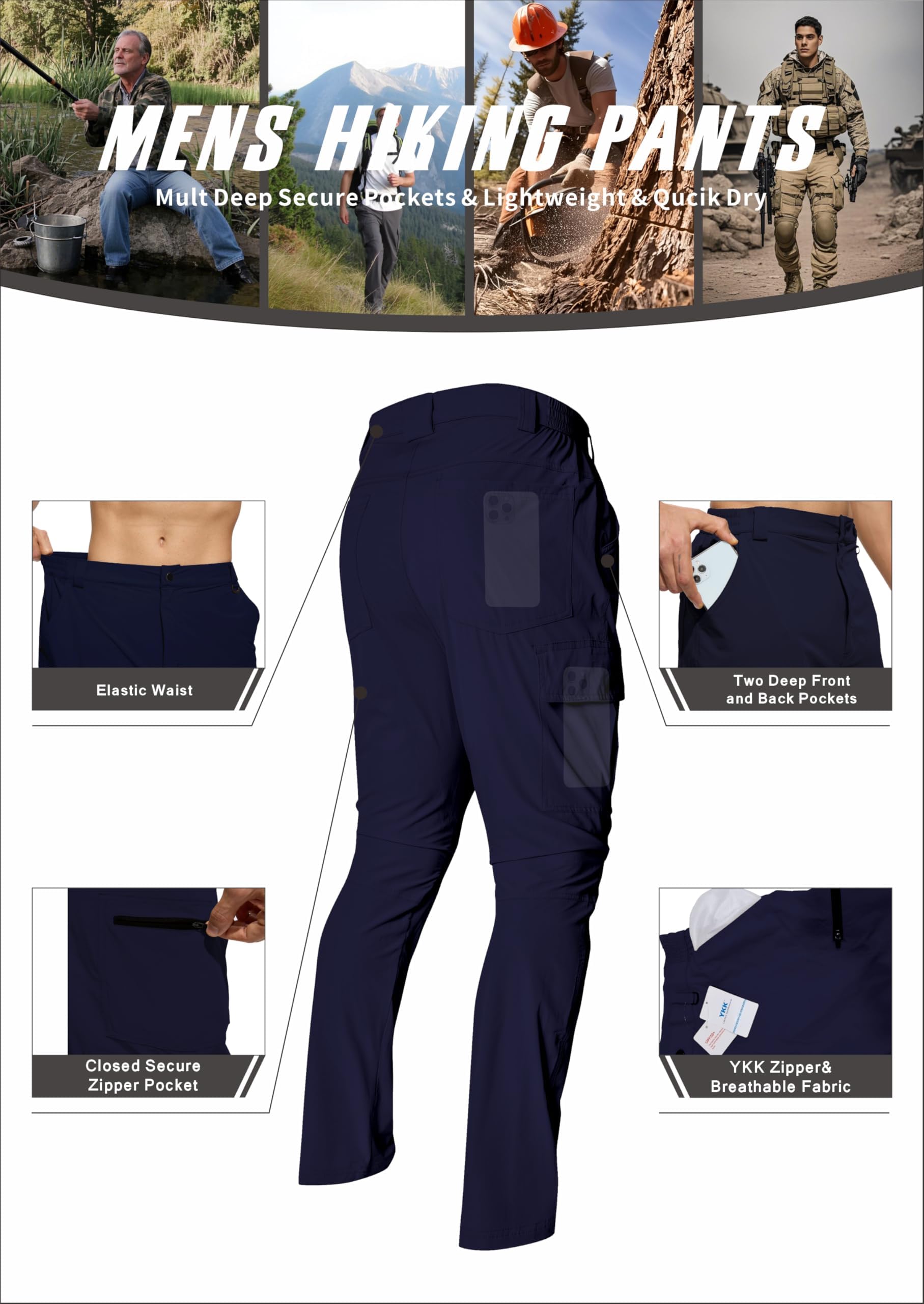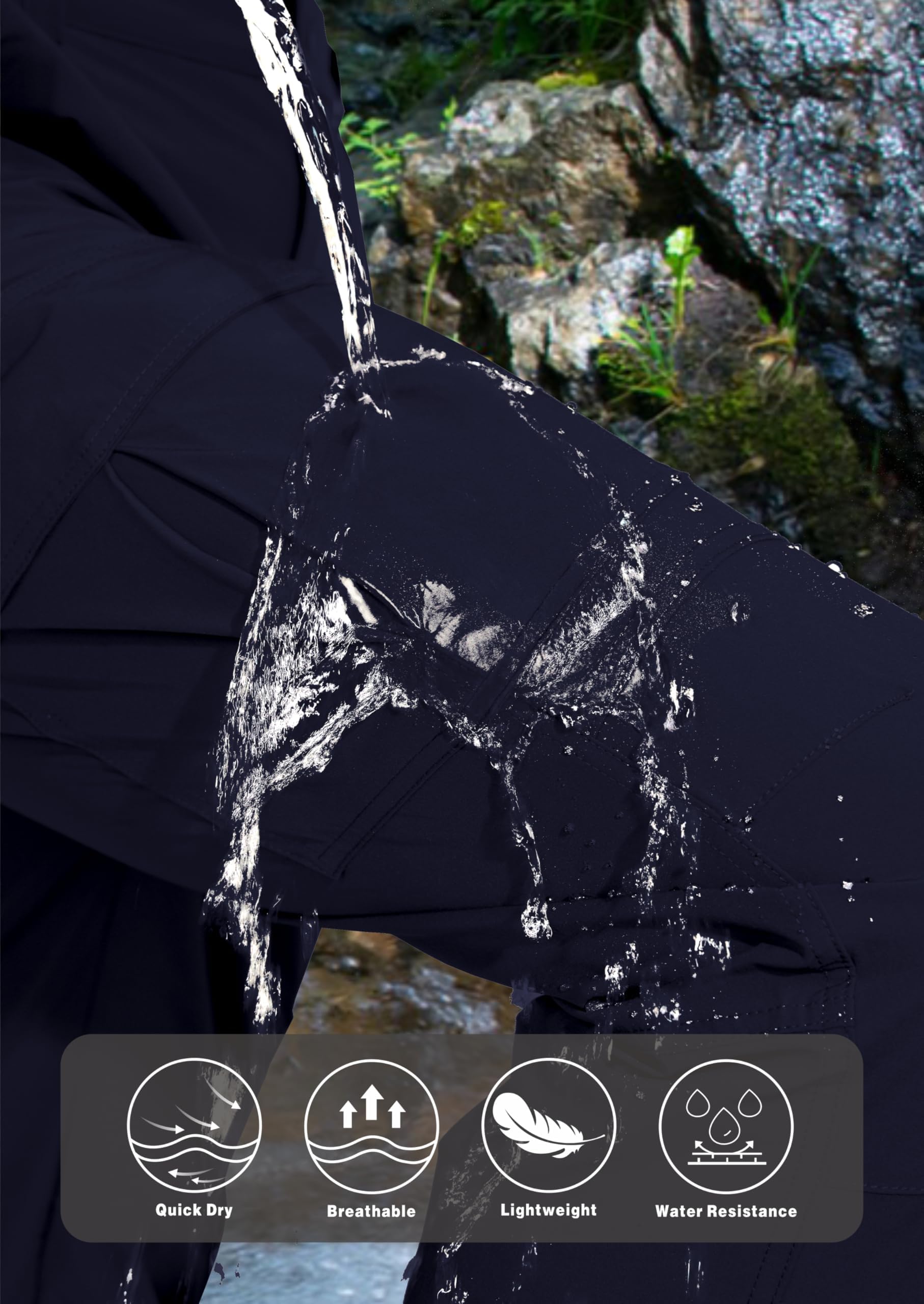 Lightweight Quick Dry: Hiking pants has the characteristics of elasticity, wrinkle resistance, and no deformation, soft to touch and comfortable to wear. The water resistance design,lightweight quick dry,more breathable in warm weather.