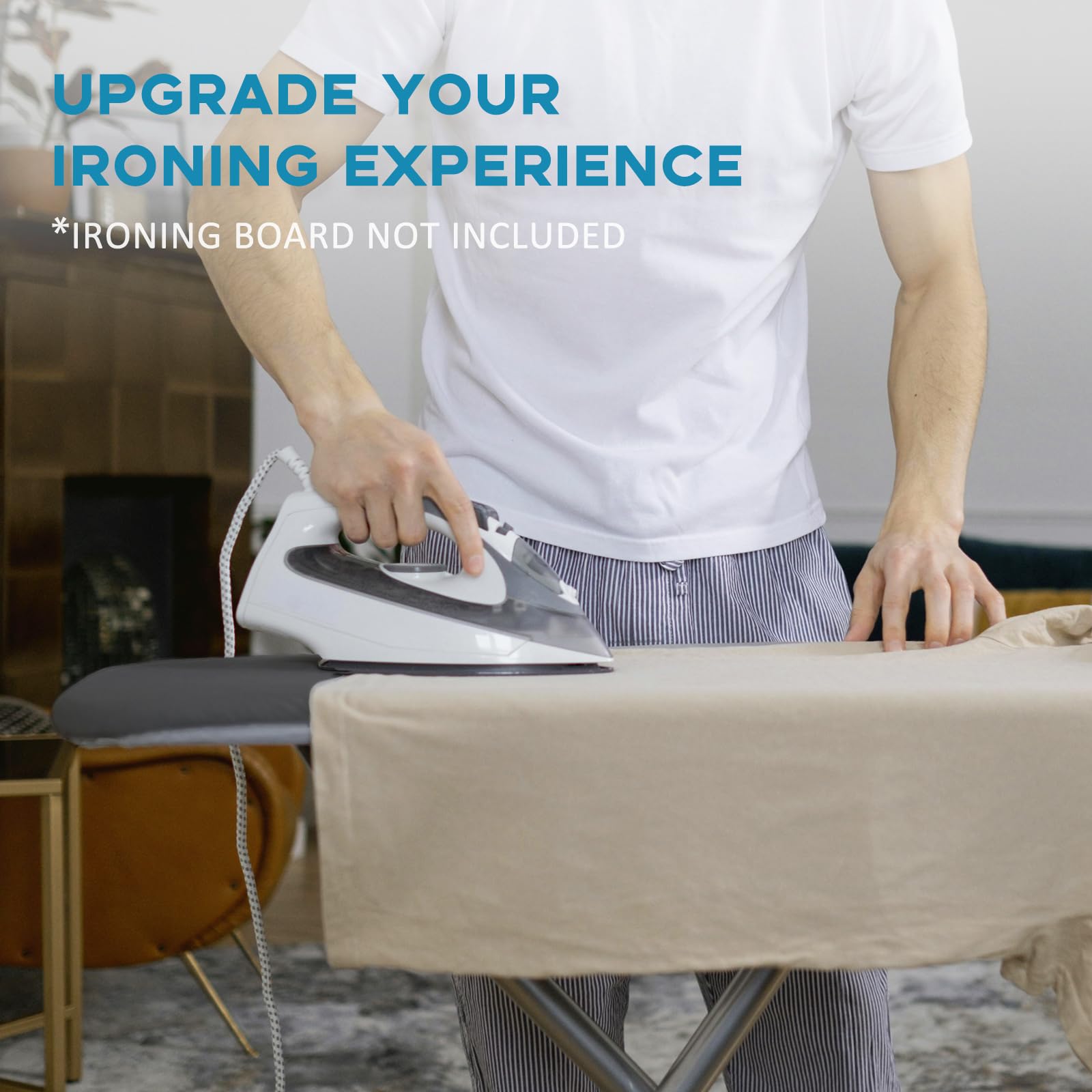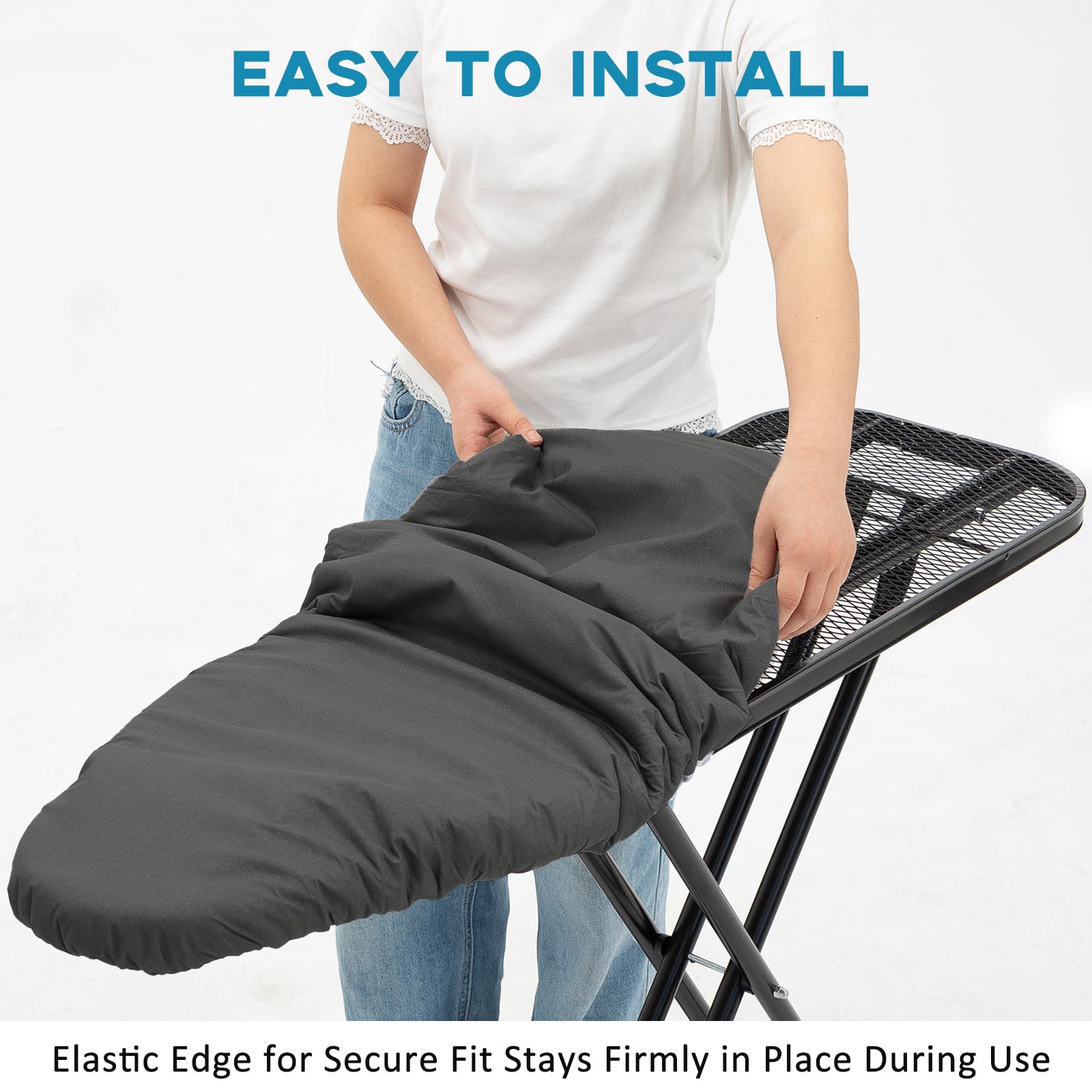 Stain & Scorch Resistant Cover: Made of 100% cotton, the cover is equipped with aluminum coating on the surface for long-term use without fading or getting stained, and the max heat-resistant temperature is 320 degrees, so there will be no more wrinkled, burned or torn ironing board covers.
