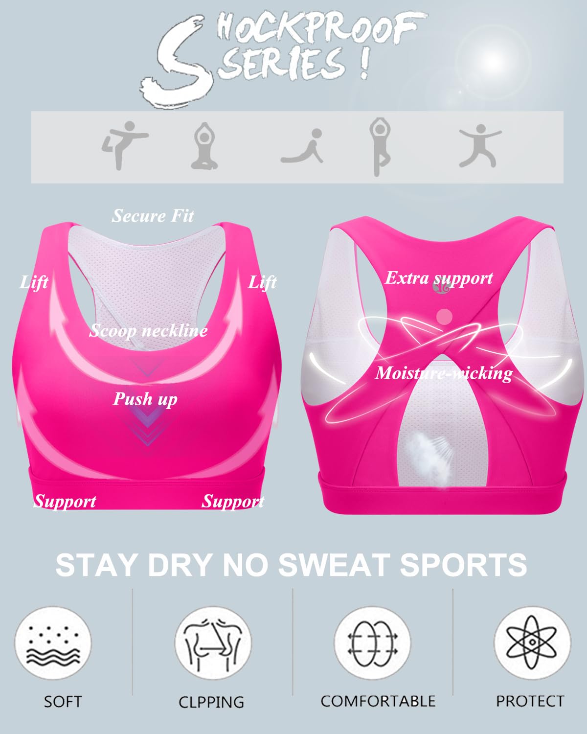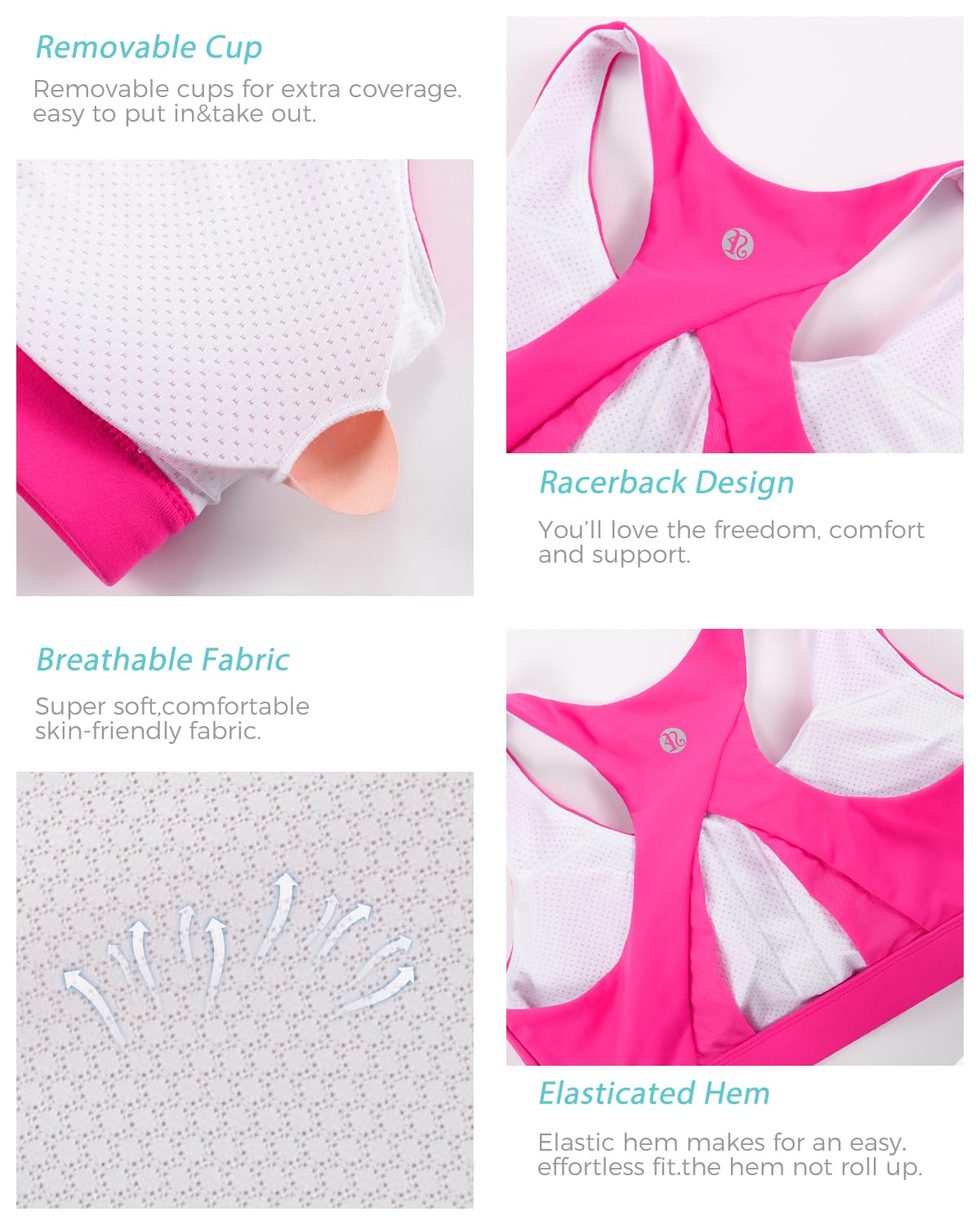 Description Our incredible high impact sports bras just got better! We improved our fit to offer juuuust enough extra coverage in the front to make them more comfortable for our larger-chested runninggirls. Featuring U-neckline, super soft fabric,elastic band and mesh back detail.