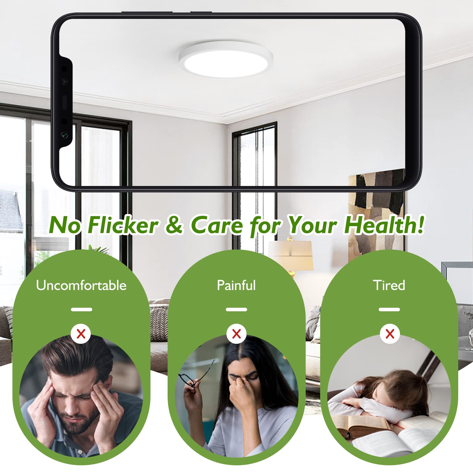 Energy Saving & Dimmable: This LED ceiling light is only 15W, yet has an output brightness of 1200LM. That means we use lower wattage, but higher brightness output to help you make your monthly electricity bill lower and lower - our ceiling light saves almost 90% of energy compared to traditional lamps. In addition, our flush mount ceiling light uses an advanced dimming chip that ensures smooth dimming without flicker or buzz, so our light is very friendly to your eyes. (Dimmer not included)