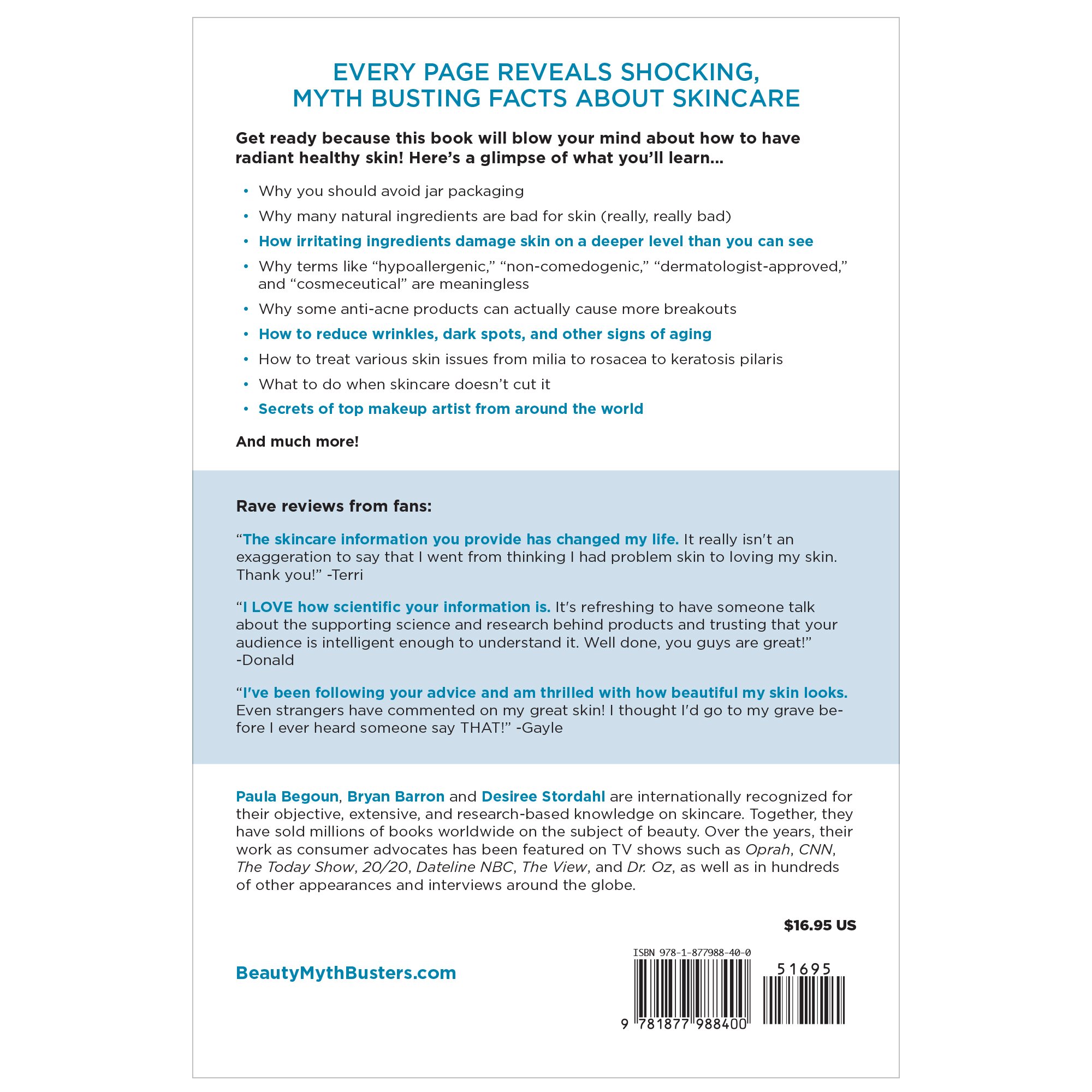 Best-selling beauty author and internationally known "Cosmetics Cop" Paula Begoun and her team of beauty experts from Don’t Go to the Cosmetics Counter Without Me are back to give readers the facts about skin and how it needs to be treated. From acne to wrinkles and everything in between, Paula and her team reveal the truth about skin type, skin concerns, cosmetic corrective procedures, dozens of today's most pervasive cosmetic myths, and some of the most helpful, surprising makeup tips we've uncovered in our careers. Readers learn why so many products don't work as claimed, discover some of our favorite products, and learn how you can easily put together a skincare routine that gets you the best possible results without sorting through all the hype and misleading information. Readers feel as though they're getting truly helpful advice from a good friend someone who's been there, knows what skin problems do to one's self-esteem, and is shedding some much-needed light on the often-confusing world of beauty. The best part? All of the skincare tips and recommendations in this book are based on published scientific research, so you can be confident you're making the smartest decisions for your beauty needs.
